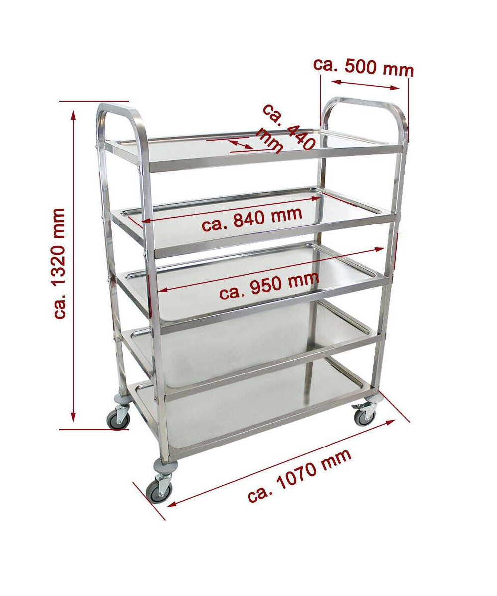 Beeketal BSW-5a chariot de service inox jusqu'à 320 kg - 5 étagères