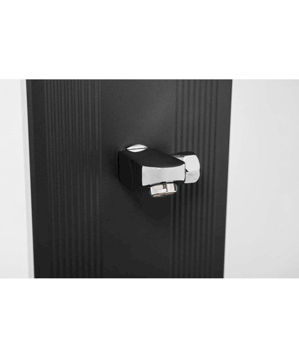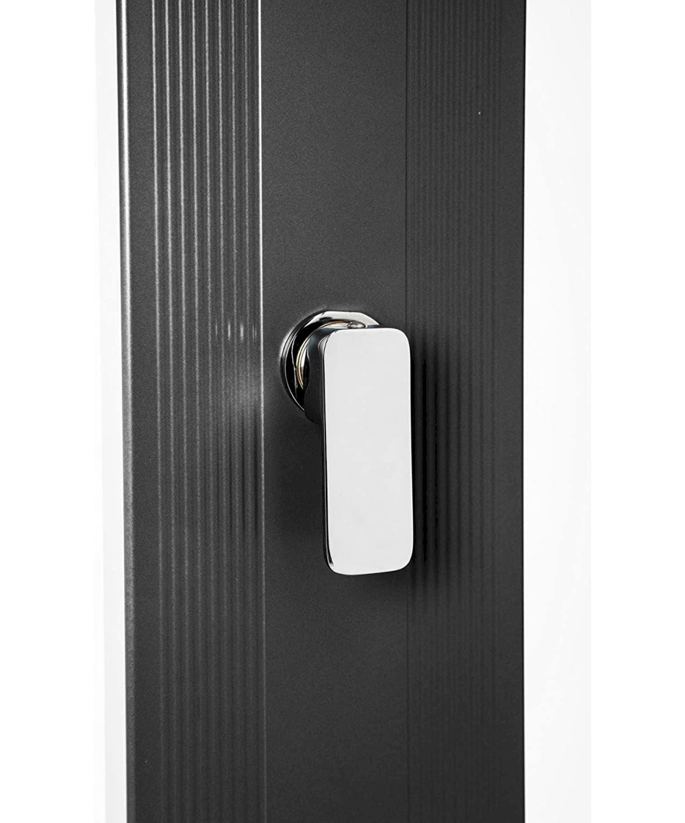 Die 225 cm hohe Dusche sorgt mit ihrem luxuriösen Design für einen echten Hingucker in jedem Garten! Ein großer selbstentkalkender Duschkopf und ein 24 Liter fassender Aluminiumtank lässt keine Wünsche mehr offen. Die gewünschte Temperatur des Wassers kann ganz einfach mit der Einhebel-Mischbatterie eingestellt werden.