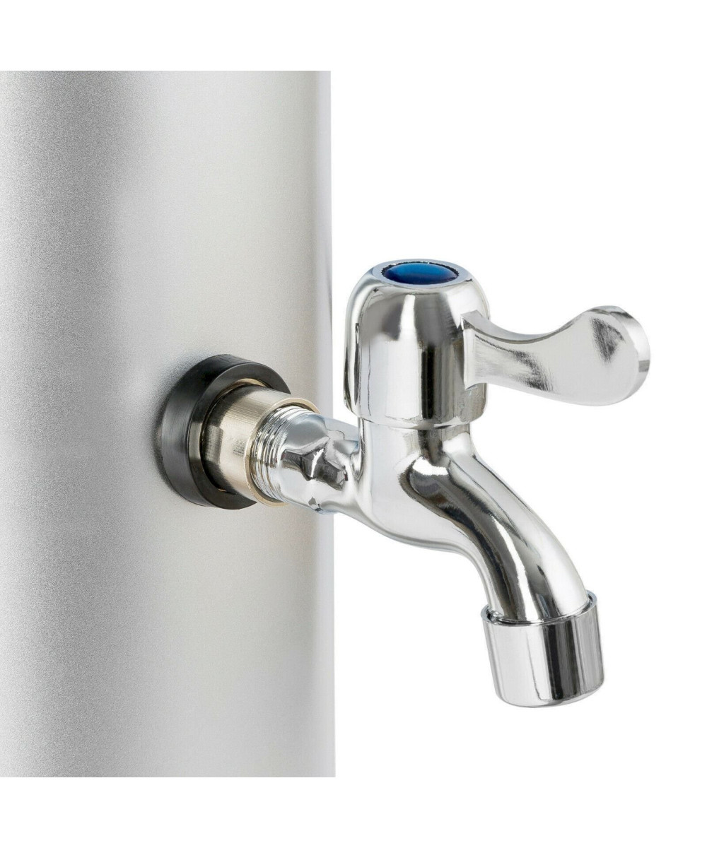 Un emplacement approprié et des conditions d'ensoleillement optimum sont les deux conditions appropriées permettant à l'eau dans le réservoir de chauffer jusqu'à 60° C. Aucune alimentation n'est nécessaire – ce qui permet d'économiser l'énergie et en même temps de protèger l'environnement. Le grand pommeau de douche permet une grande expérience de douche; elle dispose d'un joint à rotule et peut donc être adapté à vos besoins individuels. Il y a aussi un dispositif de lavage des pieds situé sur la partie inférieure.