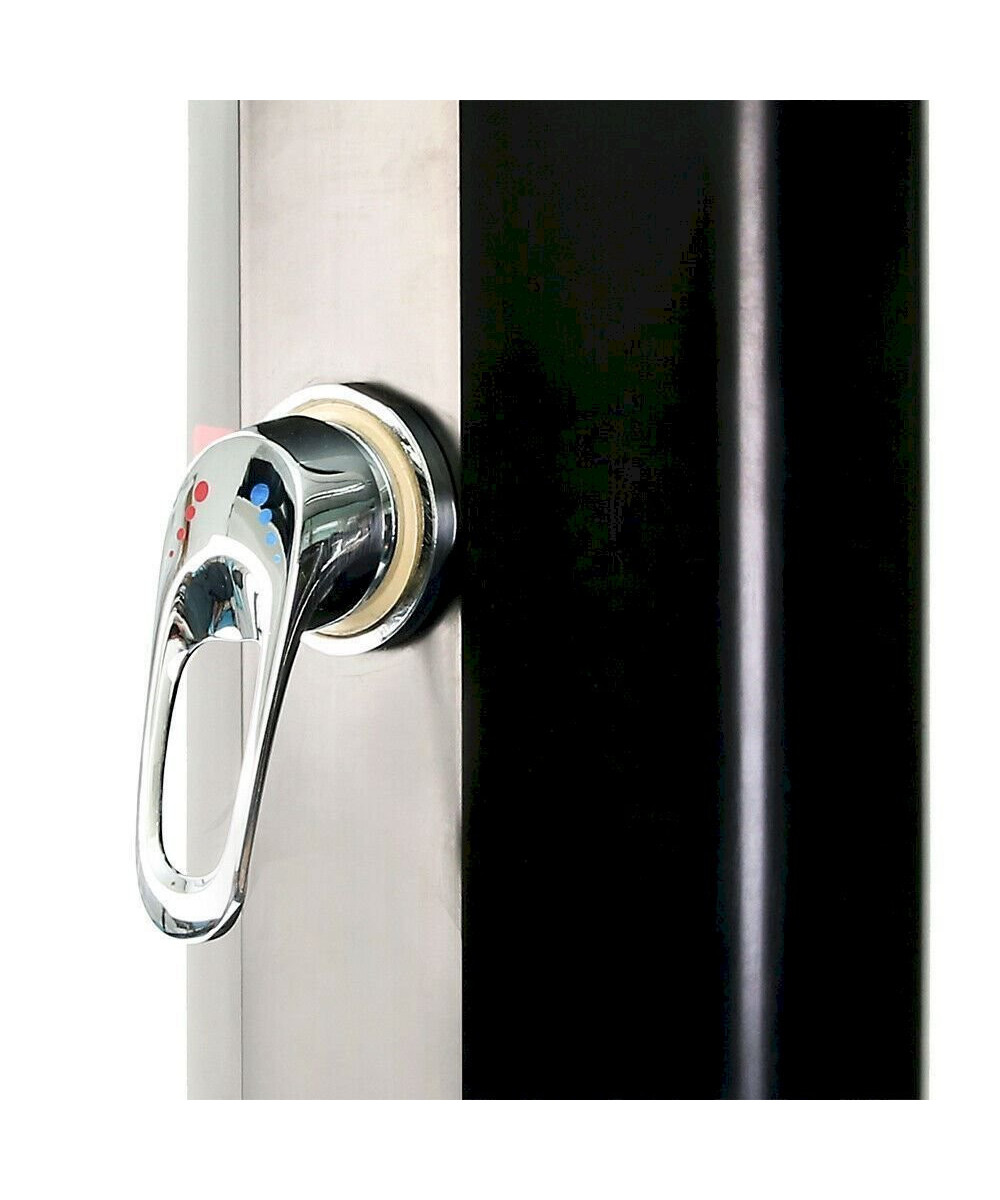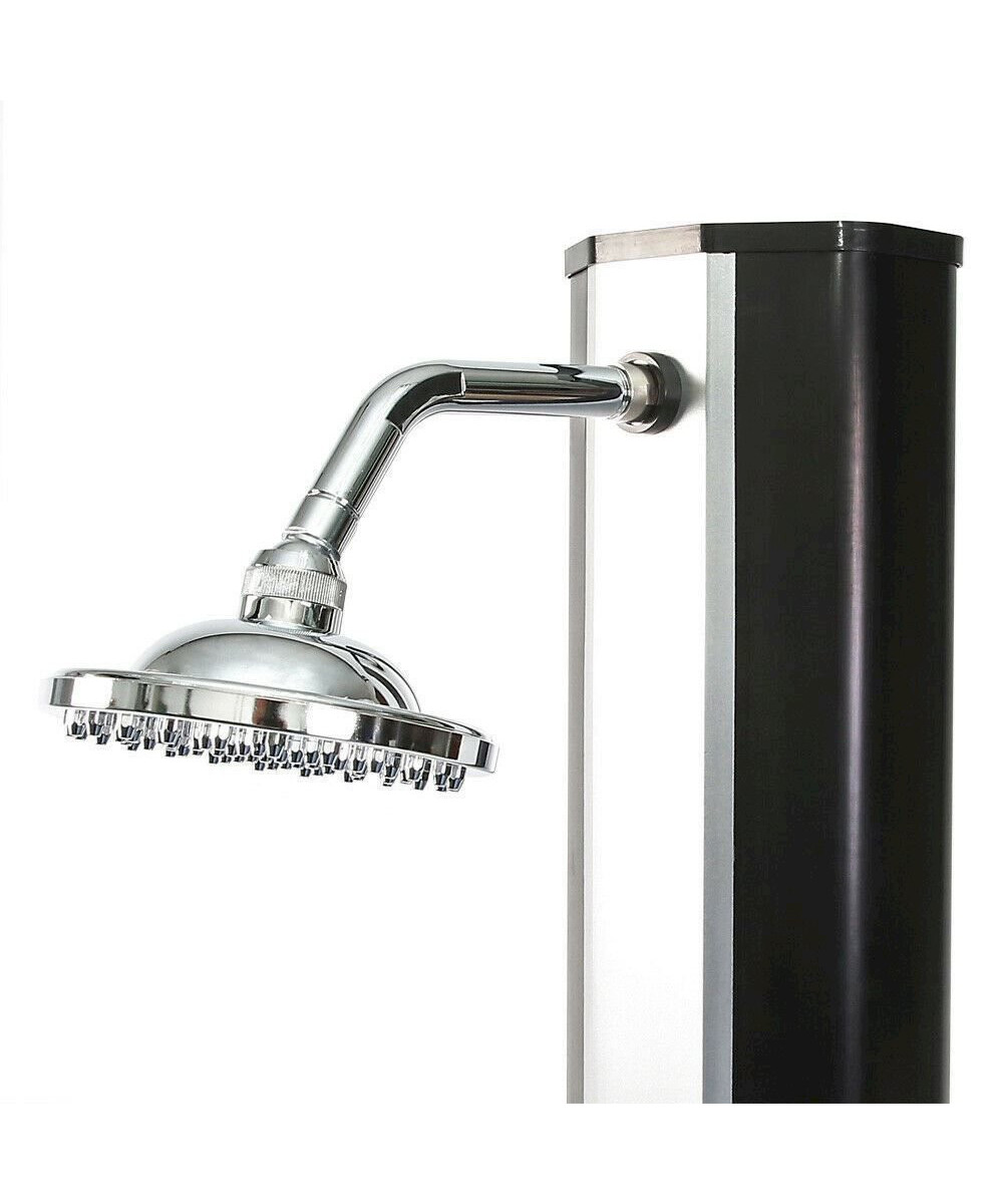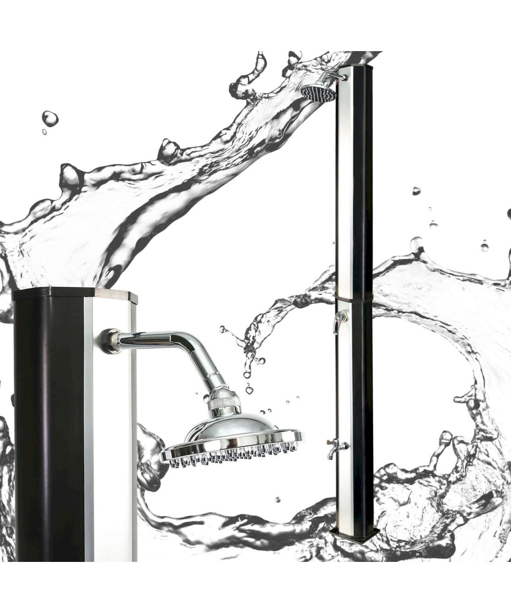 Une douche solaire qui vous invite à vous laver et vous rafraichir avant et après votre baignade dans la piscine. Une douche qui aura un effet bénéfique spa surtout grâce à un pommeau de douche pluie large et hautement placé. Une douche qui vous transportera dans un espace de Wellness et de bien-être. Hormis le pommeau pluie, la douche est munie d’un robinet mitigeur monocommande pour un réglage continu de la température de l’eau ainsi qu’un robinet supplémentaire pour vous laver les pieds. L’eau, qui est stockée dans un réservoir se trouvant à l’intérieur de la douche, est chauffée suite à son exposition directe aux rayons solaires. La couleur noire contribue à emmagasiner la chaleur et à en imprégner l’eau par la suite. Cela rend cette douche solaire écologique sans augmentation importante de frais.