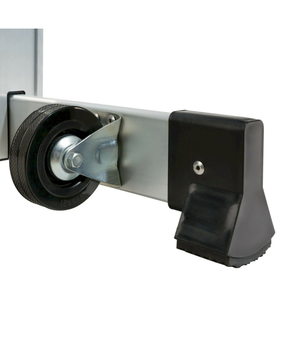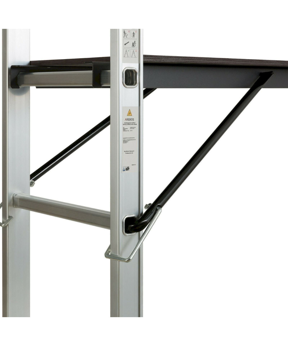 Avec cet échafaudage multi AREBOS, vous obtenez 3 outils en 1. Il peut servir d’échelle double, d’échelle simple et d’échafaudage pour traiter des espaces plus hautes. La traverse la plus basse avec des pieds en plastique antidérapants garantissent la position sûre. The entretoises transversales assurent une grande stabilité.