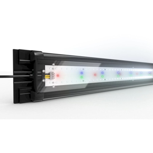 Le HeliaLux Spectrum est un luminaire encastré à LED haute performance avec un spectre complet. Les LED de pointe, spécialement développées, garantissent une luminosité maximale pour la croissance optimale de vos plantes, tout en vous permettant de réaliser des économies d'énergie d'environ 50%. Les LED blanches assurent un éclairage brillant de votre aquarium, les LED rouge, bleu et vert assurent elles des couleurs intenses et un contraste maximal dans votre monde sous-marin. La diversité de couleurs parfaitement adaptée favorise la vitalité de vos poissons et assure une croissance optimale des plantes.