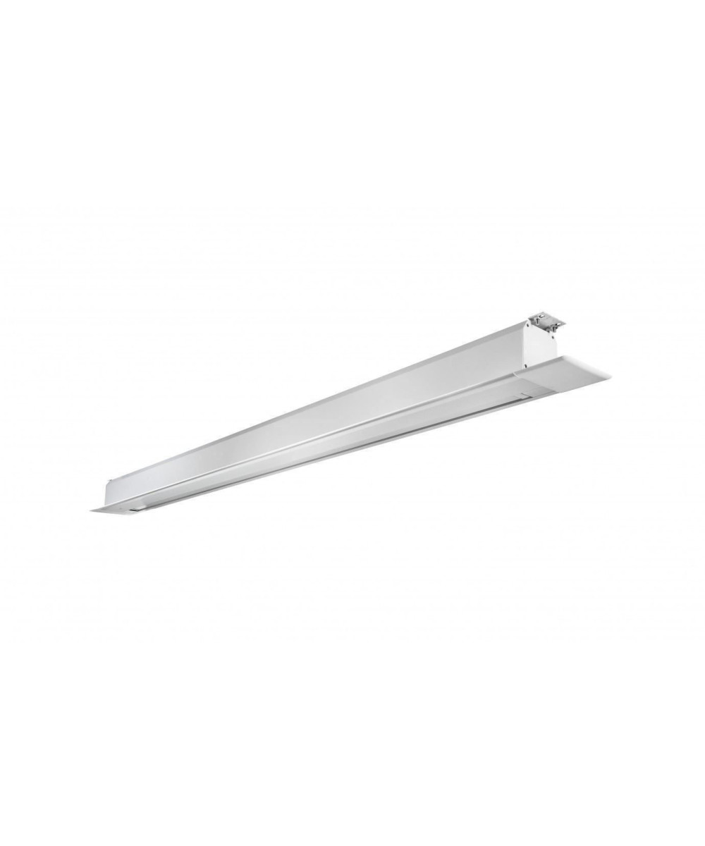 L’écran est déjà complètement pré-monté afin que le temps de montage soit réduit au minimum. L’écran est suspendu avec 4 tiges métalliques filetées au plafond brut et peut être ajusté au millimètre près sans à-coups. Les caches latéraux garantissent un fini élégant et discret pour votre découpe de plafond.