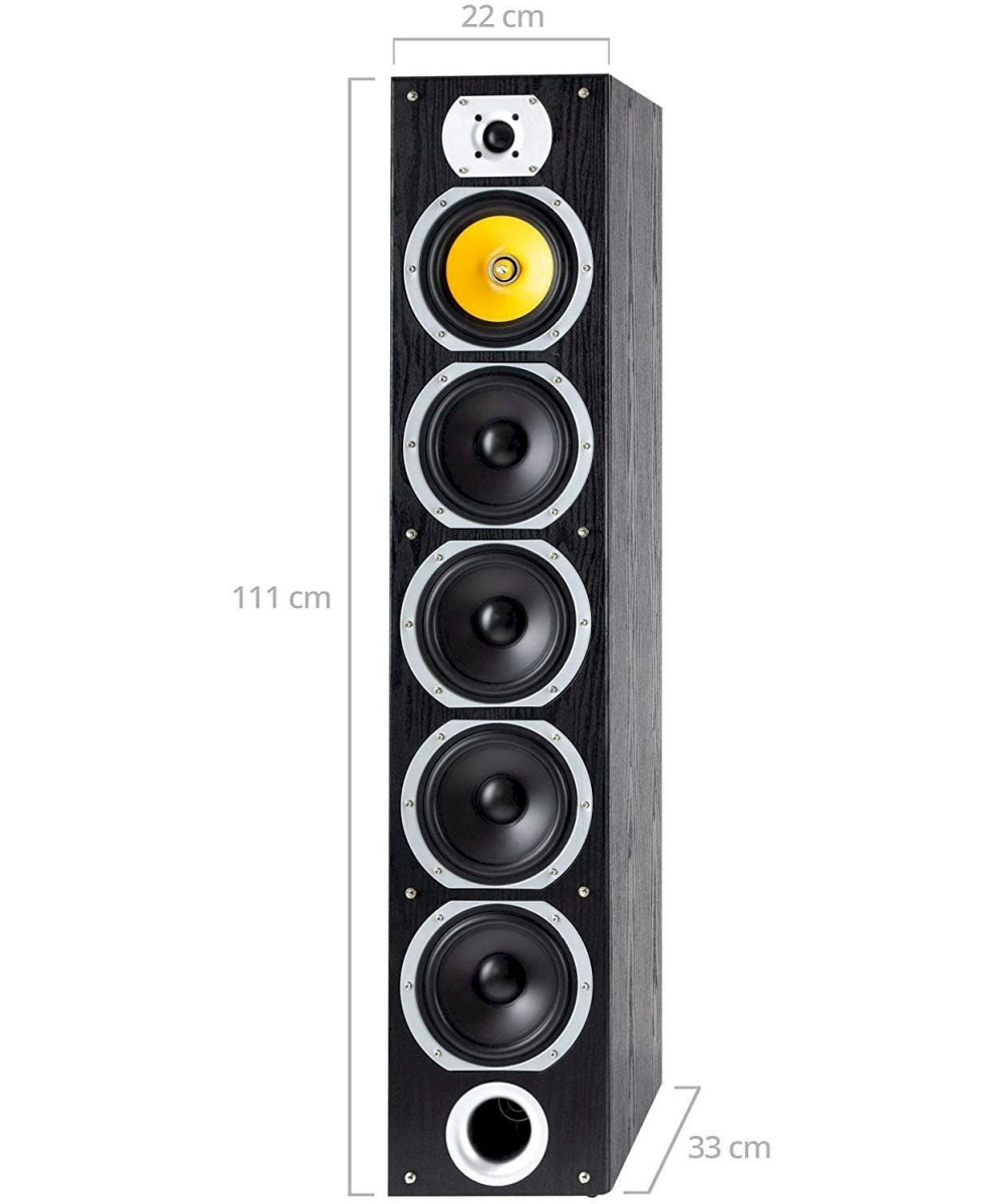 - cache en tissu détachable, diamètre de l'orifice bassreflex: 70 mm, dimensions par baffle (HxBxT): 111 cm x 22 cm x 33 cm