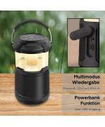 Die praktische Powerbank-Funktion ermöglicht es Ihnen, Ihre mobilen Geräte über USB aufzuladen, damit Ihnen nie der Saft ausgeht. Die Universum BT 300 ist leicht zu tragen und verfügt über eine lange Akkulaufzeit, sodass Sie stundenlanges Entertainment im Freien genießen können, ohne sich Gedanken über Stromversorgung machen zu müssen. Durch den praktischen Tragegriff und das Gewicht von unter 1kg können Sie die Multifunktionslampe bequem transportieren oder aufhängen.