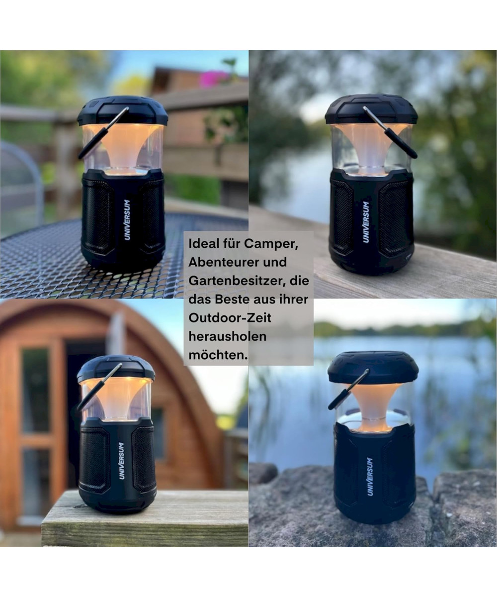 Genießen Sie unvergessliche Momente im Freien mit dem Universum BT 300 Outdoor Bluetooth Lautsprecher mit Leuchte und Powerbank Funktion. Holen Sie sich jetzt Ihre multifunktionale Begleitung für Abenteuer unter freiem Himmel!