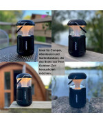 Erleben Sie das ultimative Outdoor-Entertainment mit der Universum BT 300 Outdoor Camping Laterne mit Lautsprecher und Powerbank. Dieser multifunktionale Lautsprecher vereint ein leistungsstarkes Bluetooth-Lautsprechersystem mit einer hellen LED-Beleuchtung und einer praktischen Powerbank-Funktion. Mit 20 Watt Ausgangsleistung bietet der Lautsprecher klaren und kraftvollen Klang, während die LED-Beleuchtung mit 2300 LUX für eine stimmungsvolle Atmosphäre sorgt. Zur Musikwiedergabe lässt sich ein RGB Farbwechselmodus einstellen, der im Rhythmus zur Musik für Stimmung sorgt. Die LED Gartenlaterne ist dimmbar und kann als helle Laterne den Weg ausleuchten oder ein gemütliches Ambiente schaffen.