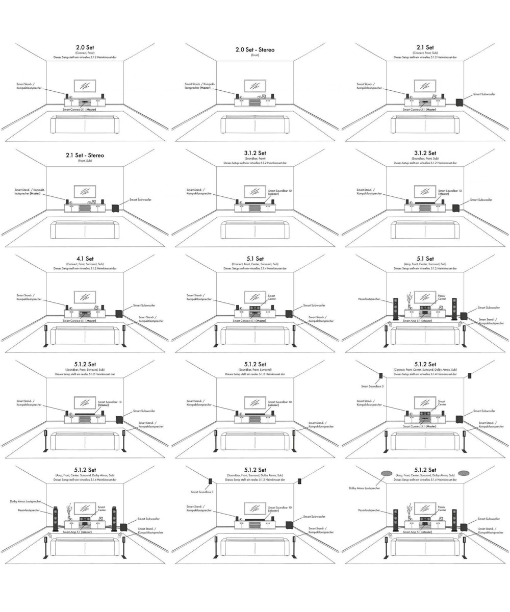 Die Canton Smart Welt eröffnet viele einzigartige Verbindungsmöglichkeiten: Mit AirPlay 2 oder der Google Home App lassen sich Ihre Lieblingssongs im ganzen Haus verteilen oder als Singleroomlösung pro Raum zu einem individuellen Heimkinoset verbinden. So lassen sich über das interne Funknetzwerk weitere Smart Lautsprecher pro Raum kabellos verbinden - ob als großes Heimkinoset in Verbindung mit Smart Produkten wie Smart Vento 9, Smart Vento 3 oder auch in Kombination mit unseren Smart Soundbars, die Möglichkeiten sind flexibel und perfekt für jede noch so schwierige Raumsituation.