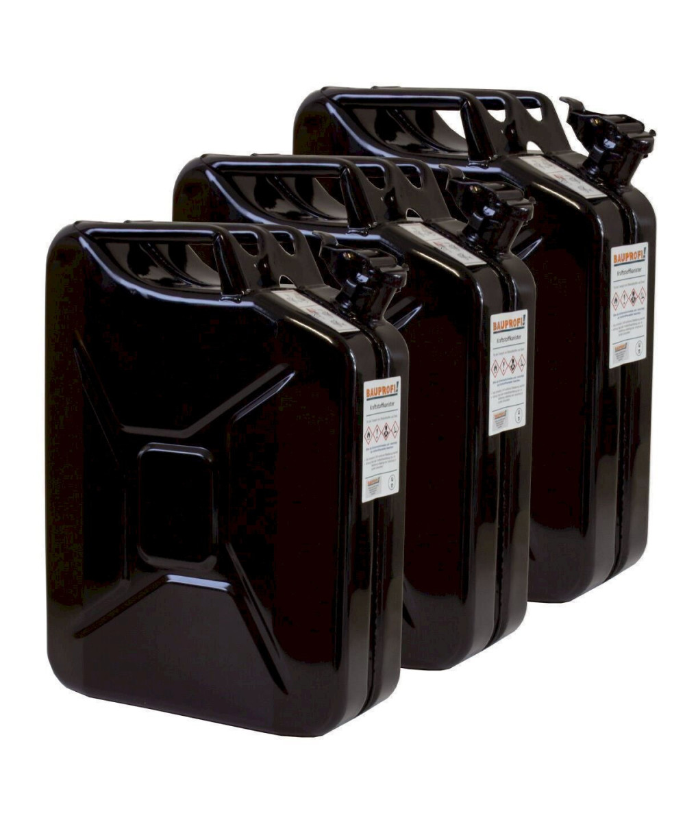 Sie kaufen hier drei hochwertige Stahlblechkanister zugelassen für Benzin & Diesel.