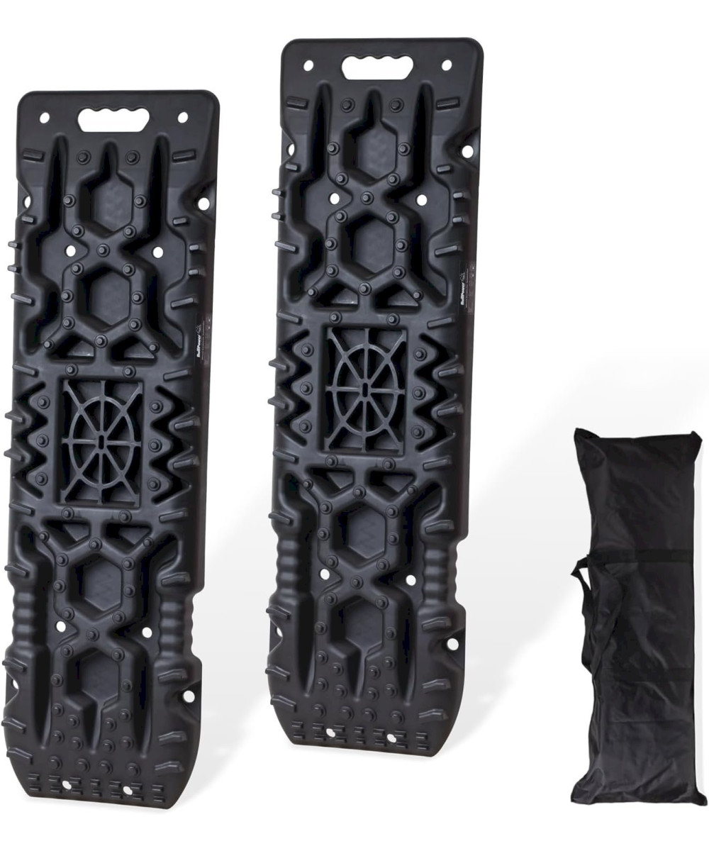 2x Bullpower Offroad Sandbleche Schwarz Kunststoff-Anfahrhilfen bis 10.000kg mit Aufbewahrungstasche