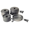 Cette batterie de cuisine de huit pièces de Campingaz est idéale pour les activités de plein air. L'ensemble comprend trois casseroles, une poêle à frire et trois couvercles. Les casseroles sont fabriquées en aluminium anodisé dur.