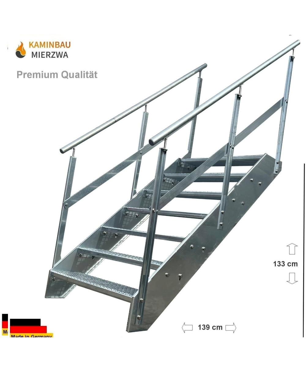 Escalier en acier 7 marches avec garde-corps des deux côtés entièrement galvanisé (L 100 x H 133 cm)