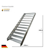 Les marches sont en acier S 235 et galvanisées à chaud selon la norme DIN EN ISO 1461, ce qui les protège parfaitement contre la corrosion.