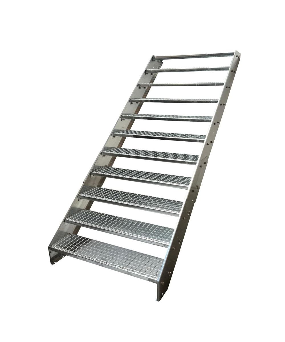 Escalier en acier 11 marches entièrement galvanisé (L 120 x H 209 cm)