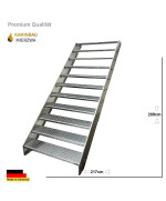 Les marches sont en acier S 235 et galvanisées à chaud selon la norme DIN EN ISO 1461, ce qui les protège parfaitement contre la corrosion.
