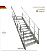 Escalier en acier 13 marches avec garde-corps des deux côtés entièrement galvanisé (L 100 x H 247 cm)