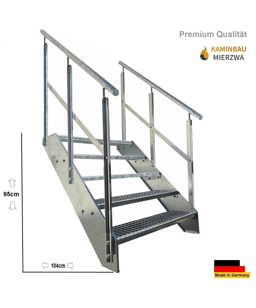 Escalier en acier 5 marches avec garde-corps des deux côtés entièrement galvanisé (L 100 x H 95 cm)