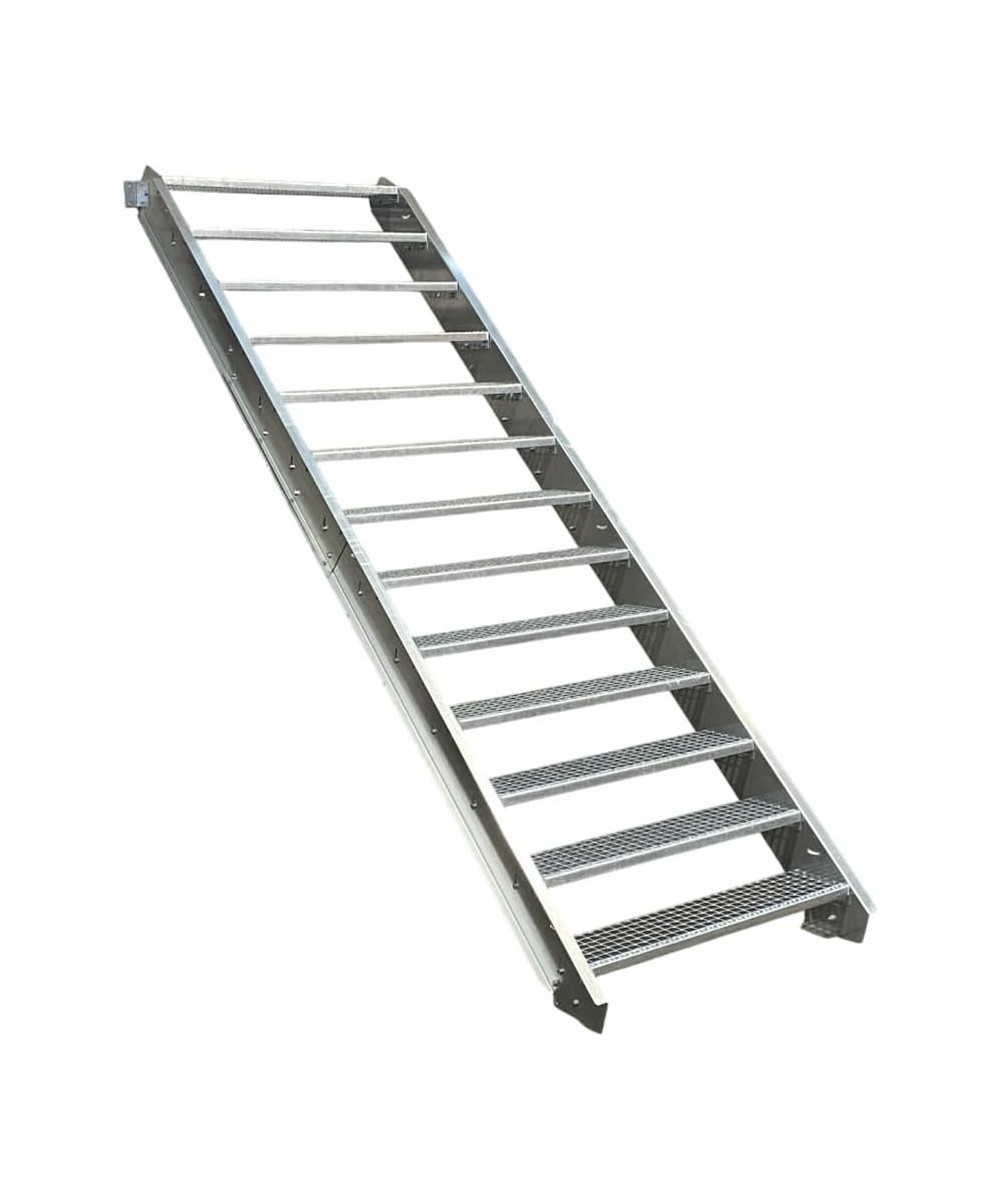Escalier en acier 13 marches sans garde-corps galvanisé (L 90 x H 195-260 cm)