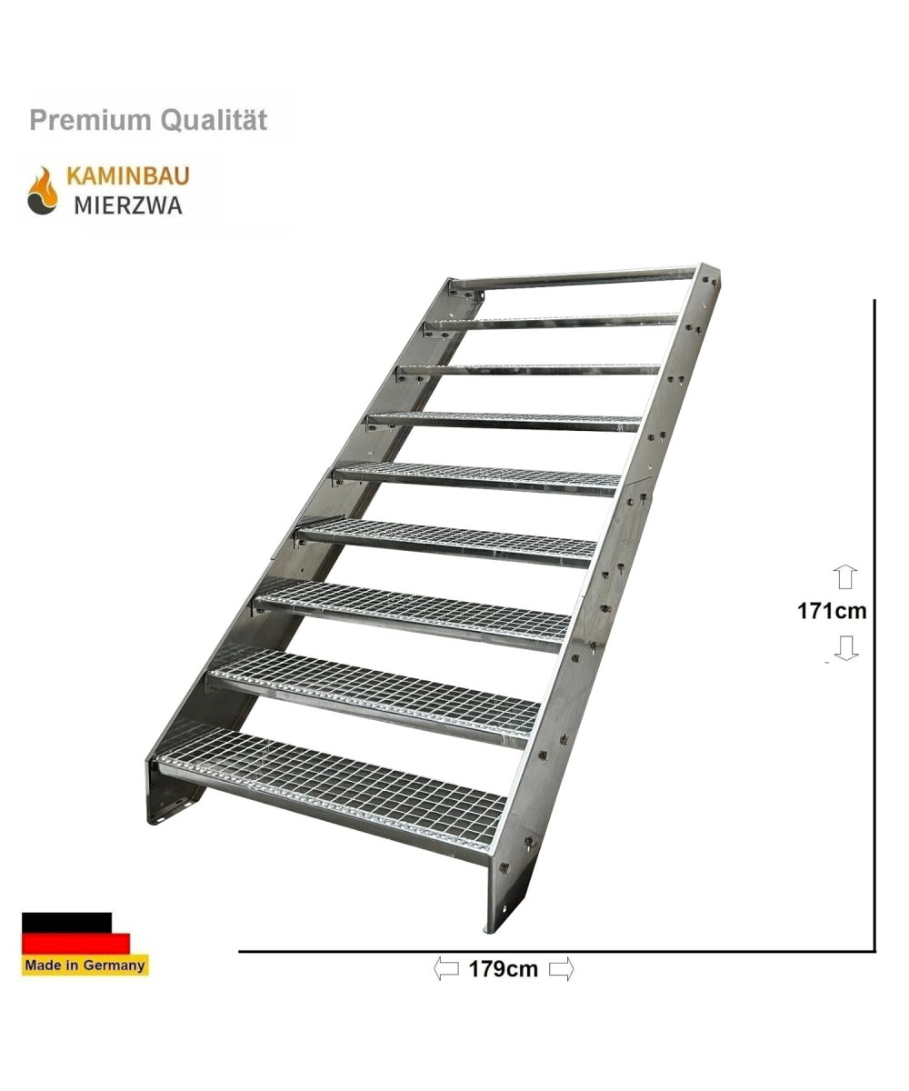 Escalier en acier 9 marches entièrement galvanisé (L 80 x H 171 cm)