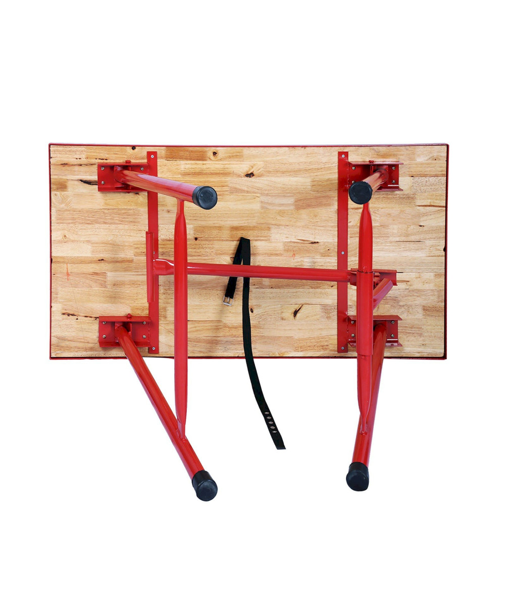 La construction robuste, composée d'une solide plaque de bois de 2,7 cm d'épaisseur et d'un robuste châssis en acier, peut supporter de lourdes charges allant jusqu'à 300 kg et peut donc également être utilisée comme une table d'emballage. Malgré sa stabilité, l'établi peut être monté et démonté en quelques étapes et est plus facile à transporter et plus flexible que les établis conventionnels.