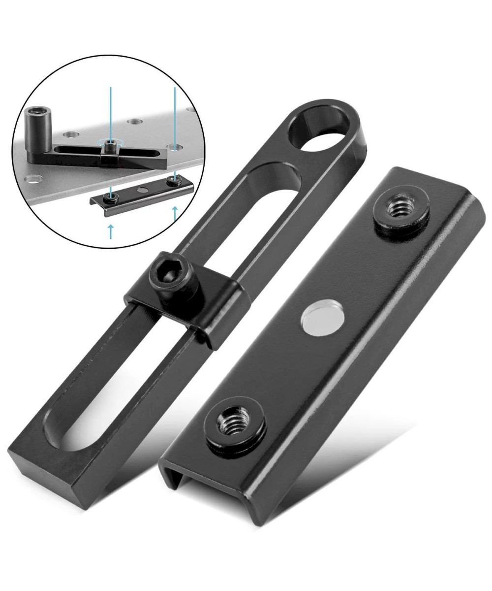 - La table de soudage est livrée avec de nombreux accessoires tels que des butées magnétiques, un serre-joint, des boulons de butée, de serrage et de centrage.