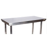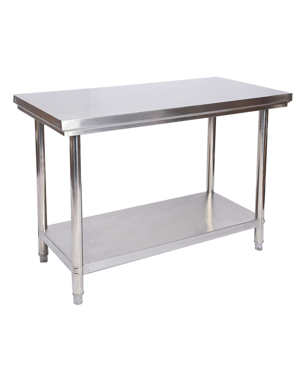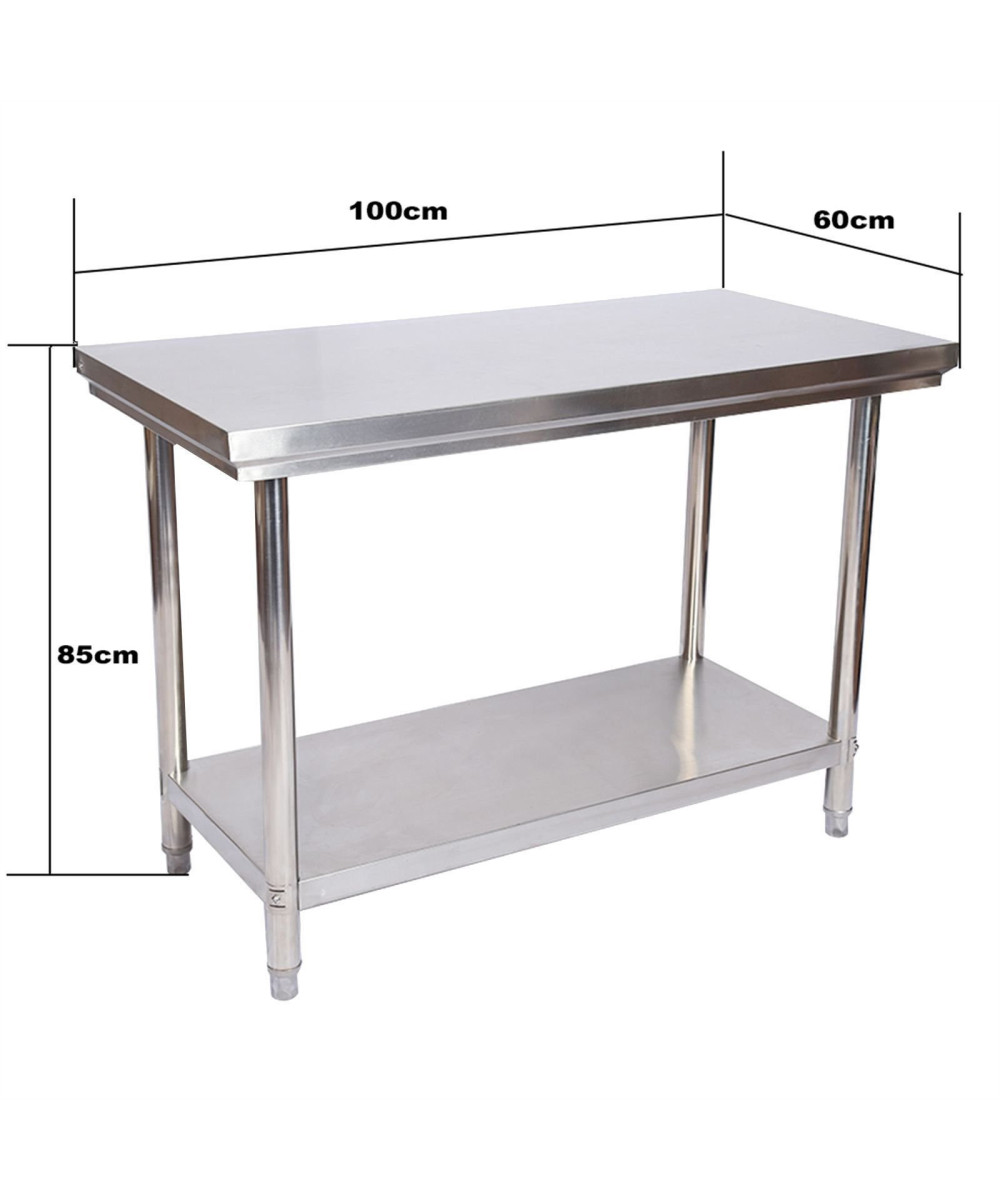 Cette table de travail en acier inoxydable - V2A de construction solide et massive, surtout grâce aussi au renforcement de la table de travail avec une plaque MDF. La grande étagère qui se trouve en dessous de la surface de travail vous permettra de garder la zone de travail propre et bien rangée et surtout vous gagnerez assez de place pour vous consacrer à vos travaux.
