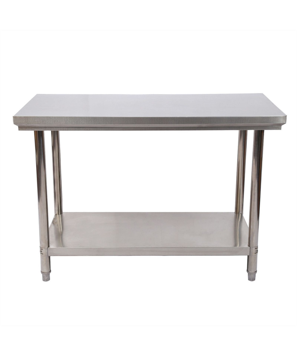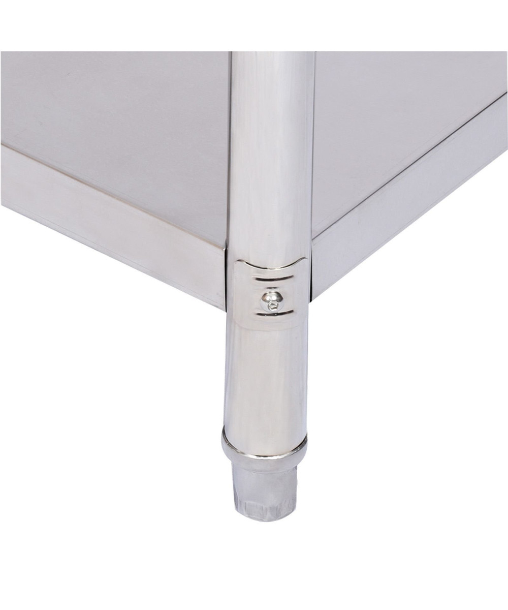 Cette table de travail en acier inoxydable - V2A de construction solide et massive, surtout grâce aussi au renforcement de la table de travail avec une plaque MDF. La grande étagère qui se trouve en dessous de la surface de travail vous permettra de garder la zone de travail propre et bien rangée et surtout vous gagnerez assez de place pour vous consacrer à vos travaux.