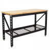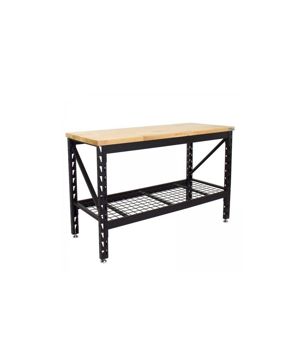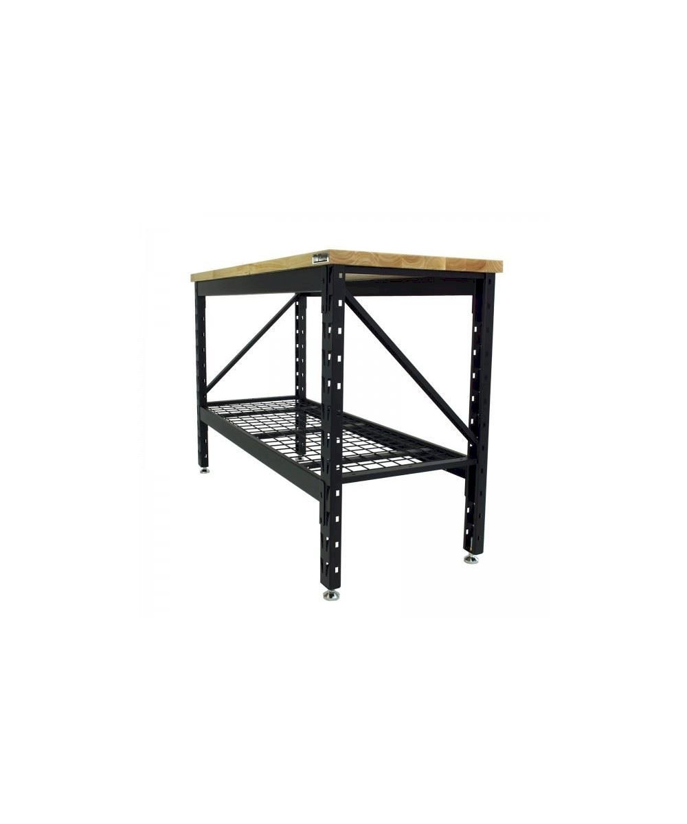 Das stabile Stahlgestell bietet dem Werktisch einen festen und sicheren Stand. Die höhenverstellbaren Füßen sind ideal zum Ausgleichen von unebenen Fußböden .