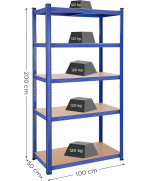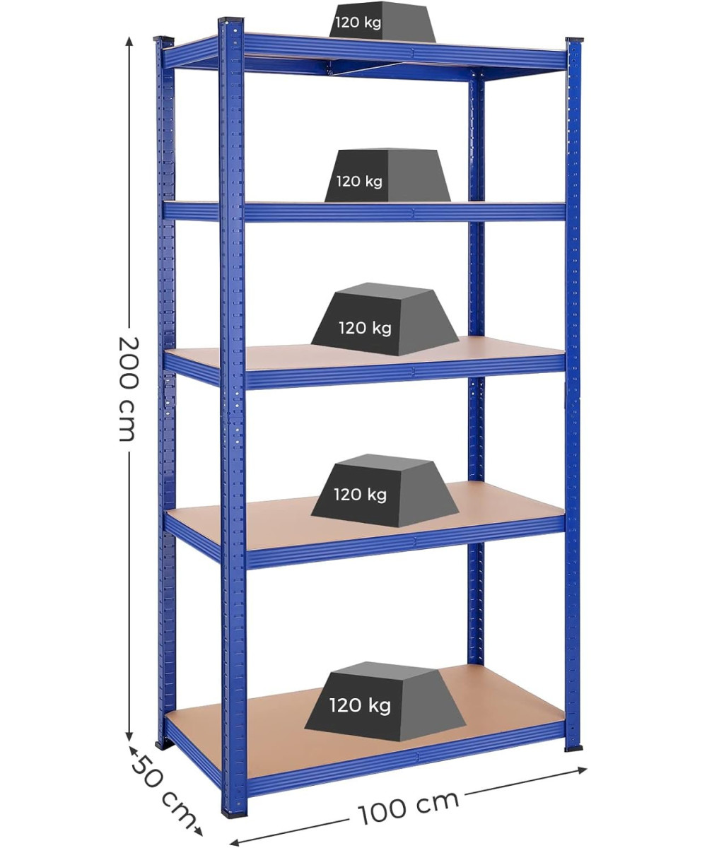 SONGMICS Étagère de Rangement à 5 Niveaux (50 x 100 x 200 cm) Bleu