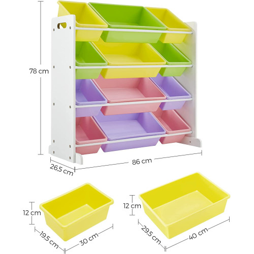 SONGMICS meuble de rangement jouets enfant couleurs Pastel, blanc 86 x 26,5 x 78 cm GKR04KL