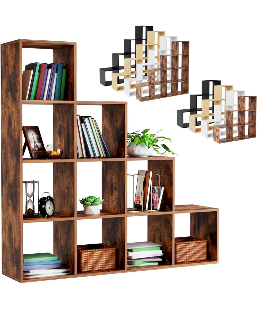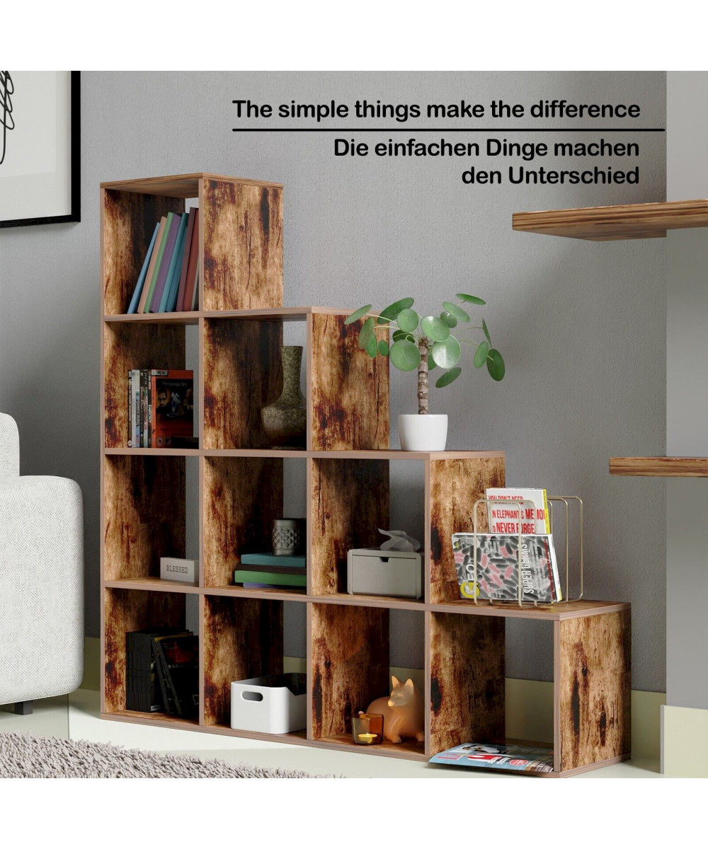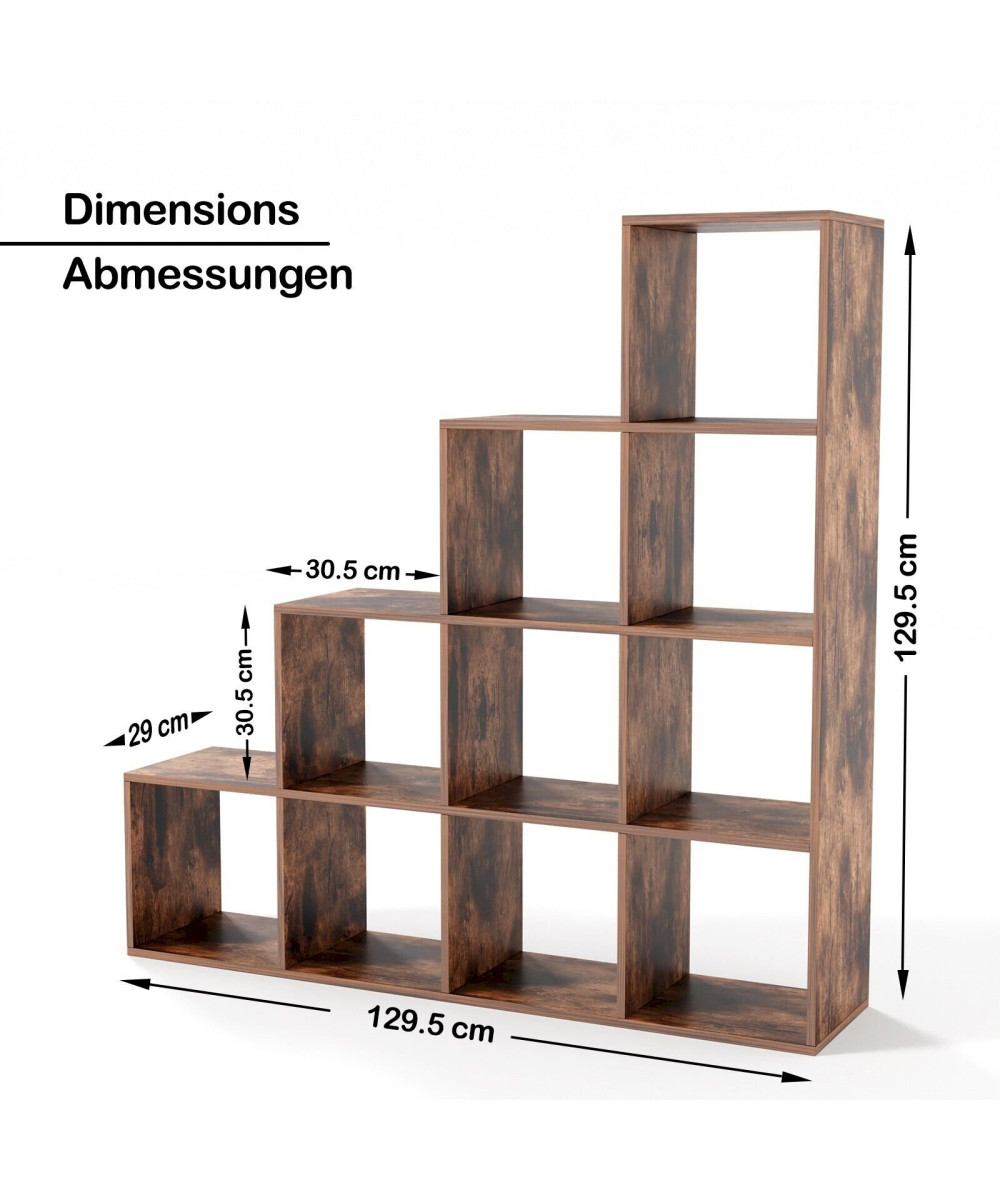 Étagère d'escalier 10 compartiments 129,5x29x129,5cm marron vintage