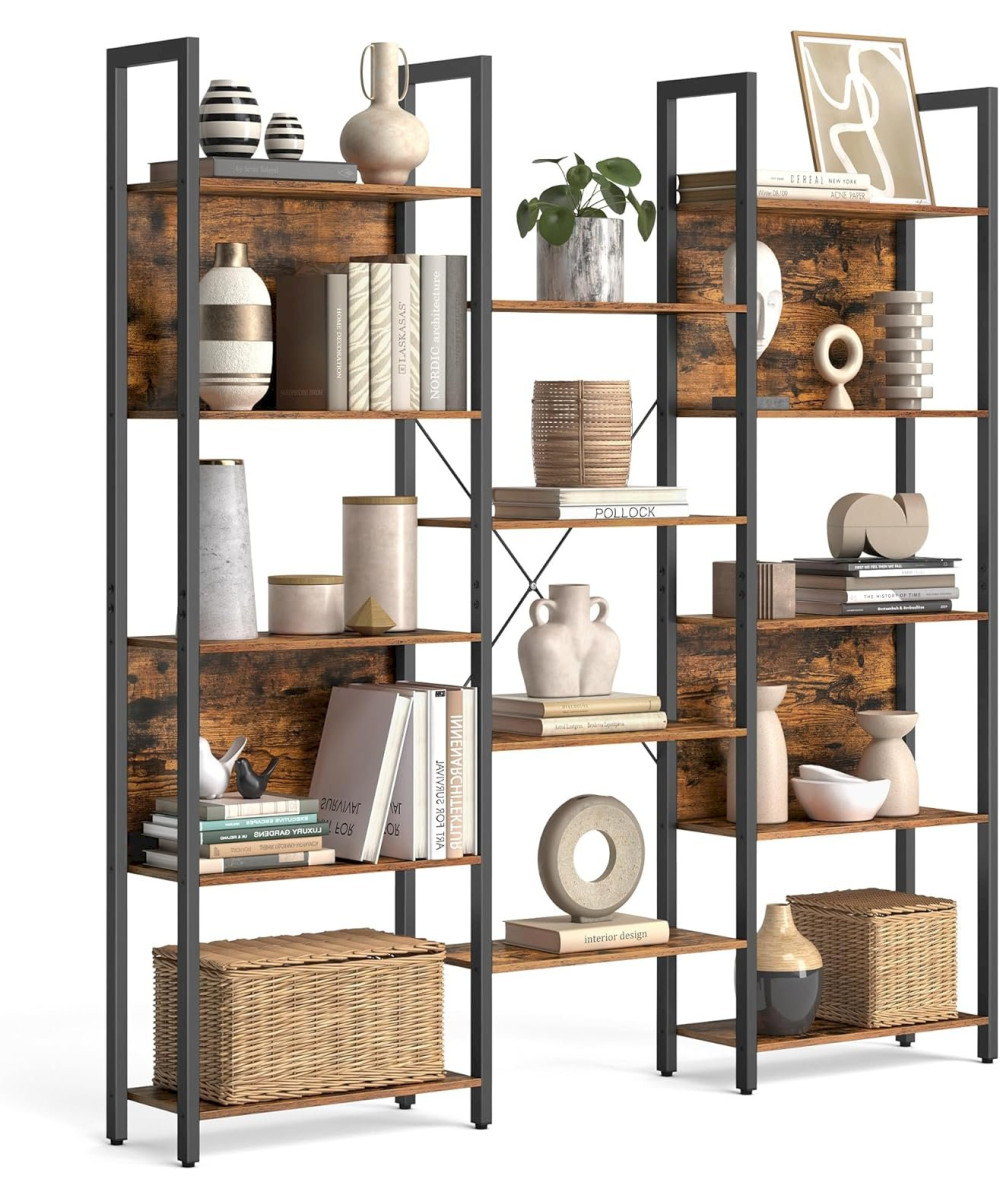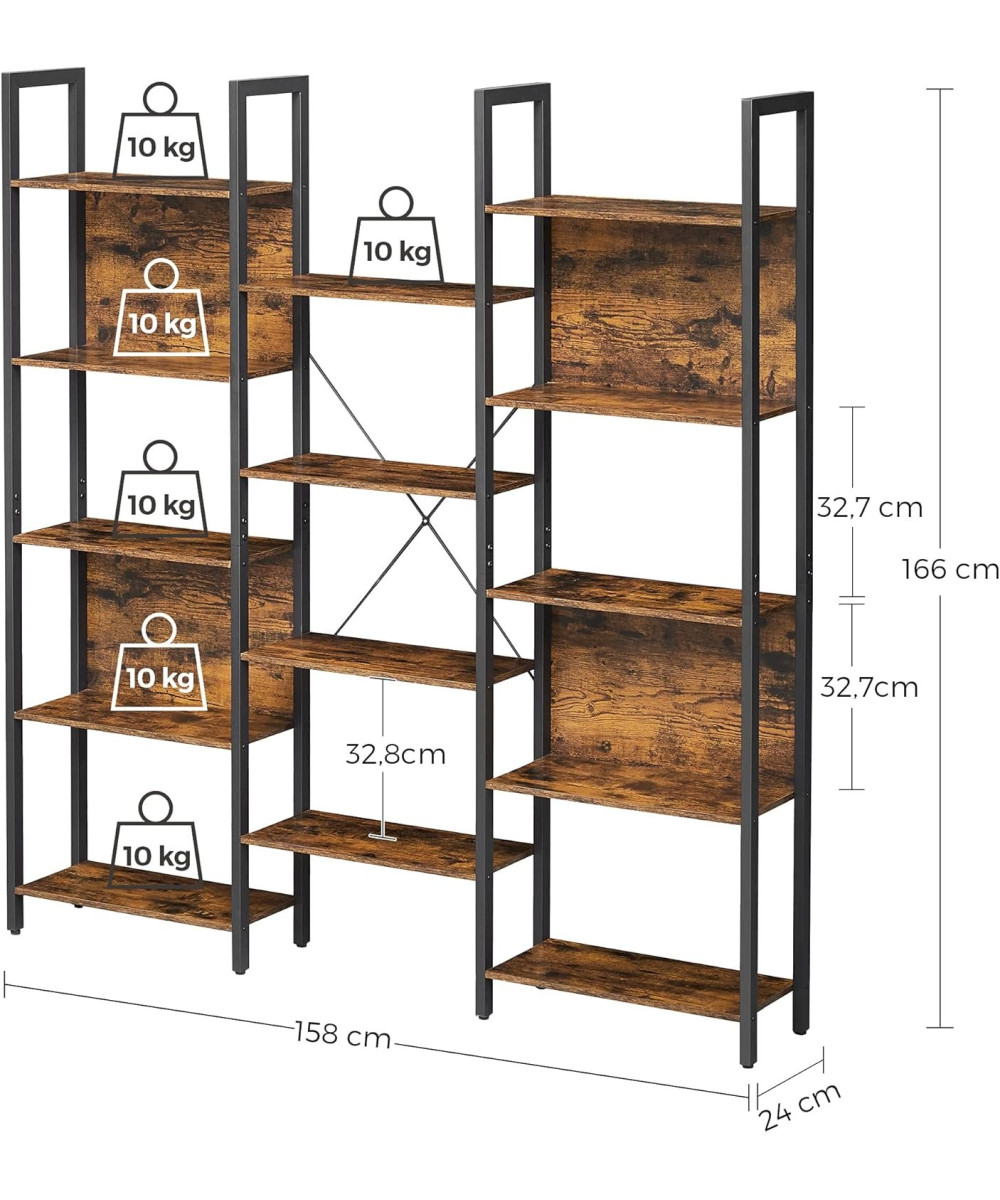 VASAGLE Bibliothèque 14 étagères couleur Marron Rustique-Noir 24x158x166cm