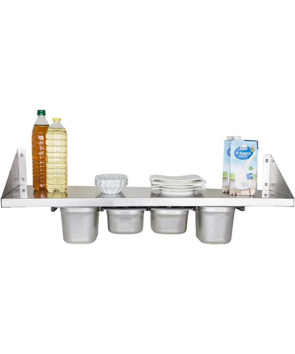 Die Beeketal (G/N) Behälter Hängeregale aus Edelstahl eignen sich speziell für den Einsatz in der Gastronomie. Die Regale werden aus rostfreiem Edelstahl gefertigt und sind somit überall in der Gastronomie, Großküchen, Krankenhäusern oder zu Hause in der privaten Küche problemlos einsetzbar. Die Küchenregale verfügen über großzügige Abstellflächen und können pro Regalboden mit bis zu max. 35 kg belastet werden. Zudem befinden sich an der Unterseite (G/N) Behälter Einschübe inkl. Behälter für z.B. Gewürze usw.