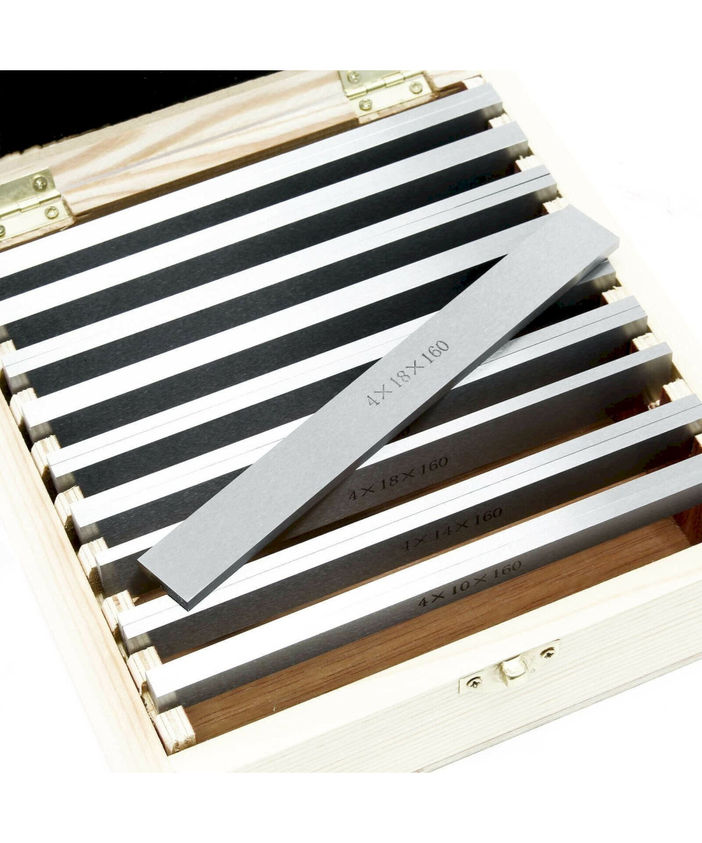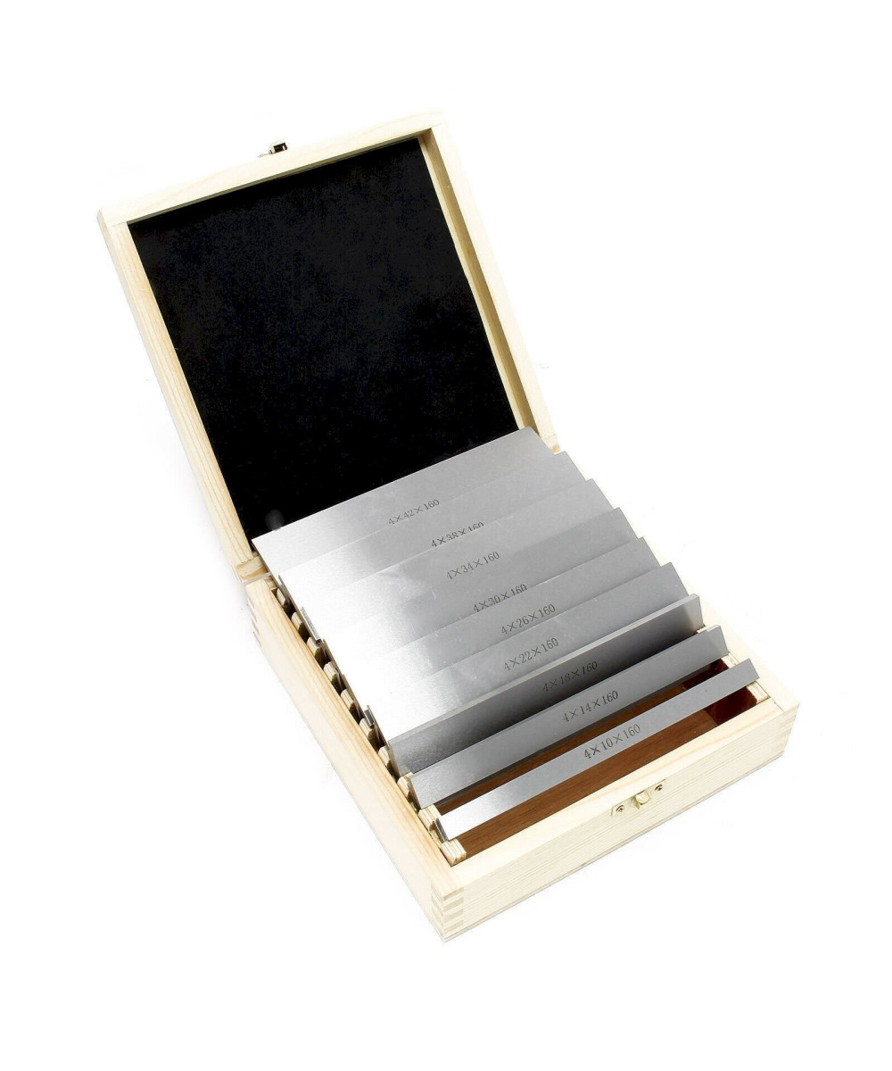 L'utilisation de supports parallèles permet d'éviter des temps de serrage excessivement longs et donc de réduire les coûts des pièces. L'ensemble contient un total de 18 documents, chacun composé de 9 paires. Ils sont fabriqués en acier à outils extrêmement robuste d'une dureté de 55-65 HRC, ce qui les rend idéaux pour une utilisation avec des étaux, des fraises et des tours.