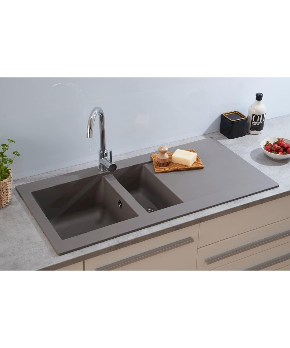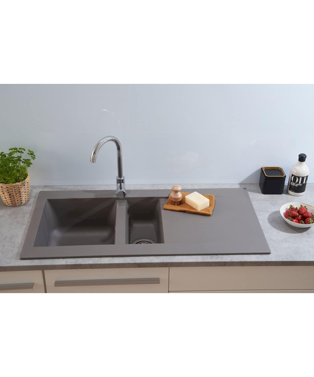 Respekta Denver 100x50cm Évier Encastré Evier de Cuisine Granit Mineralite Gris