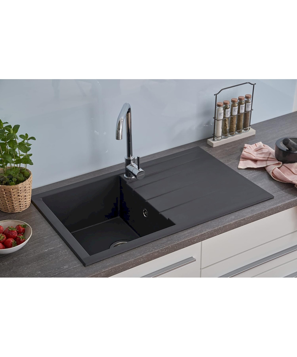 Respekta Houston Evier de Cuisine Évier Encastré Granit Mineralite 80x50cm Noir