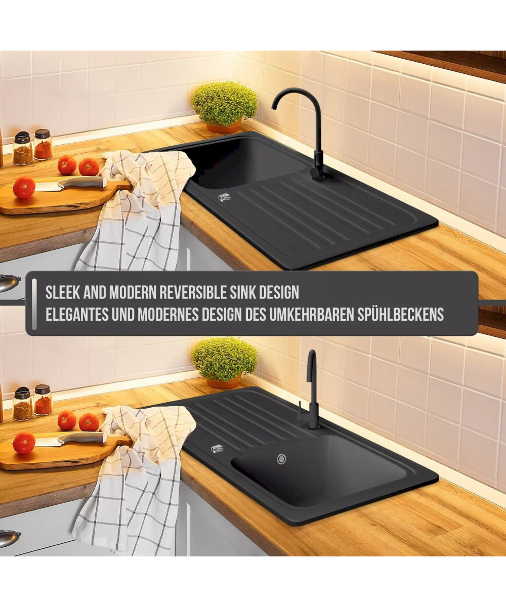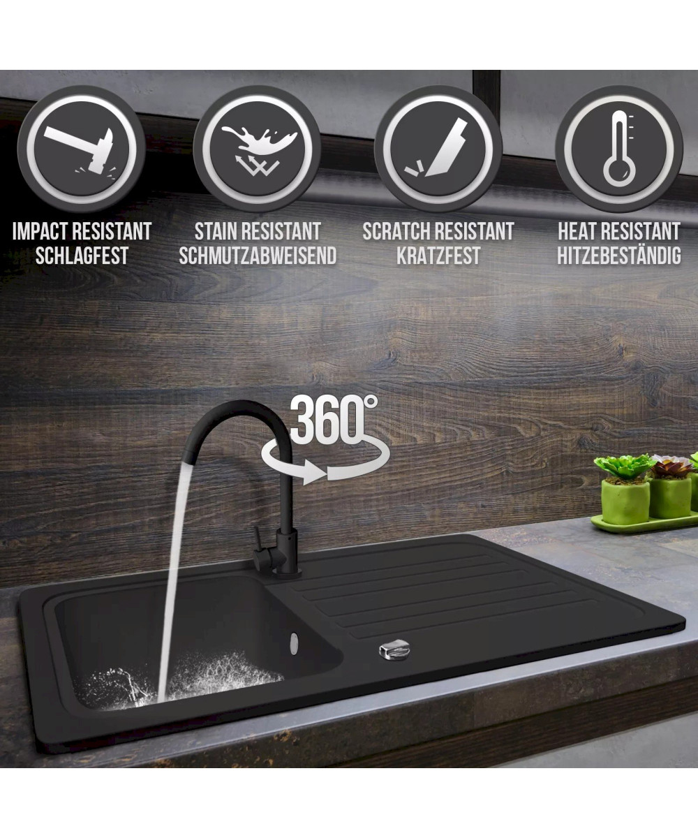 1 x Küchenspüle mit Abtropffläche (GRSPL-Set-Parent2), zur Selbstmontage, inklusive: