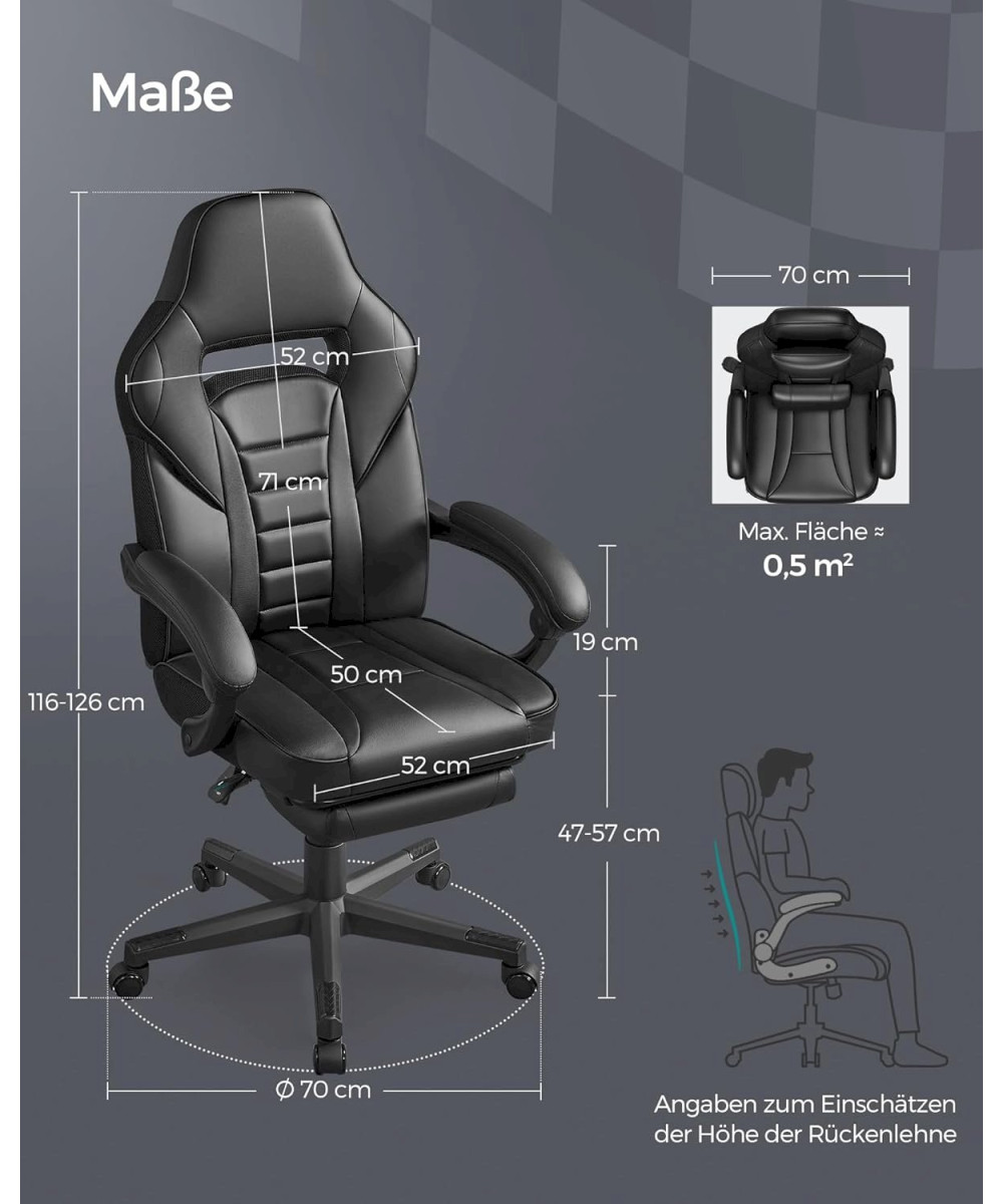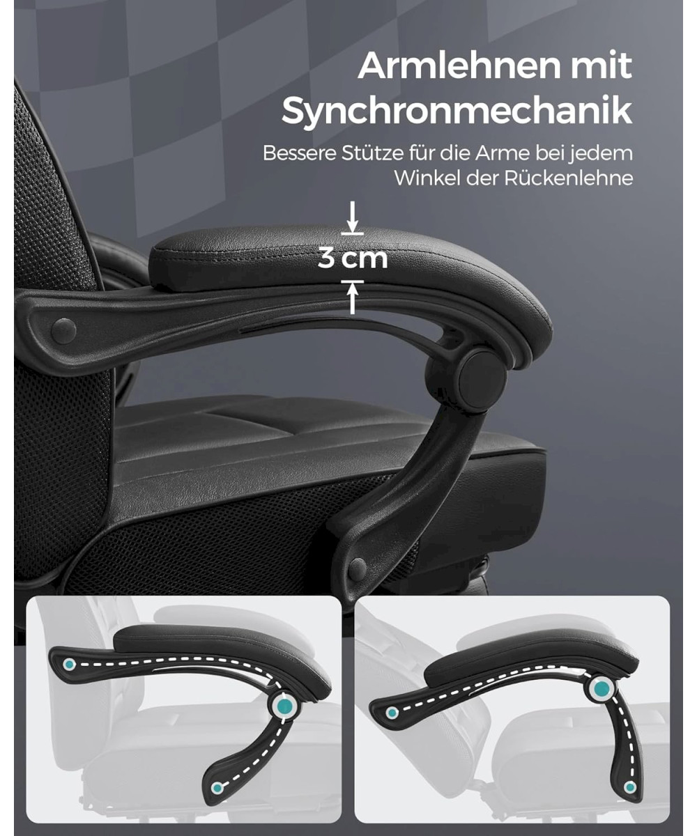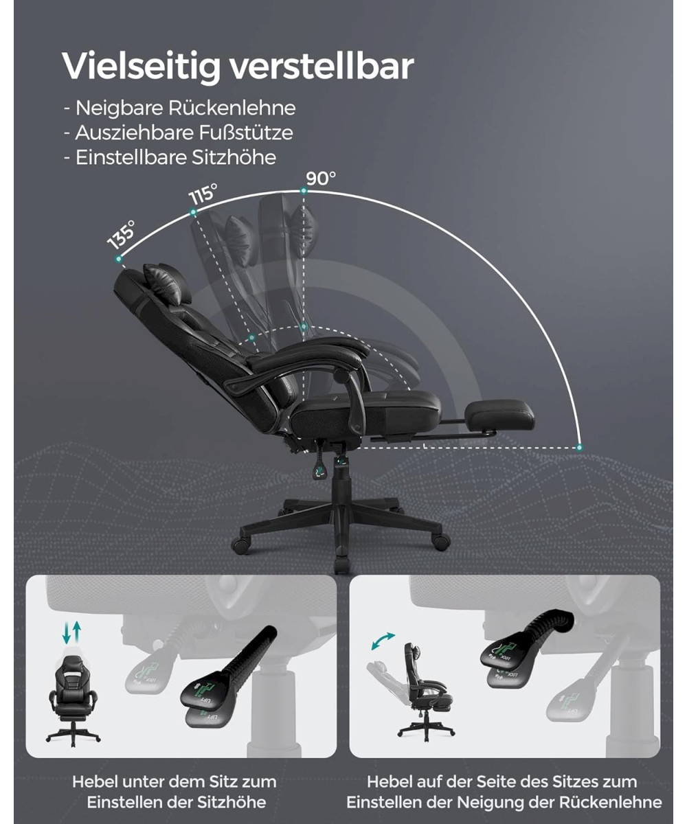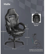 SONGMICS Fauteuil gamer Chaise de bureau noir