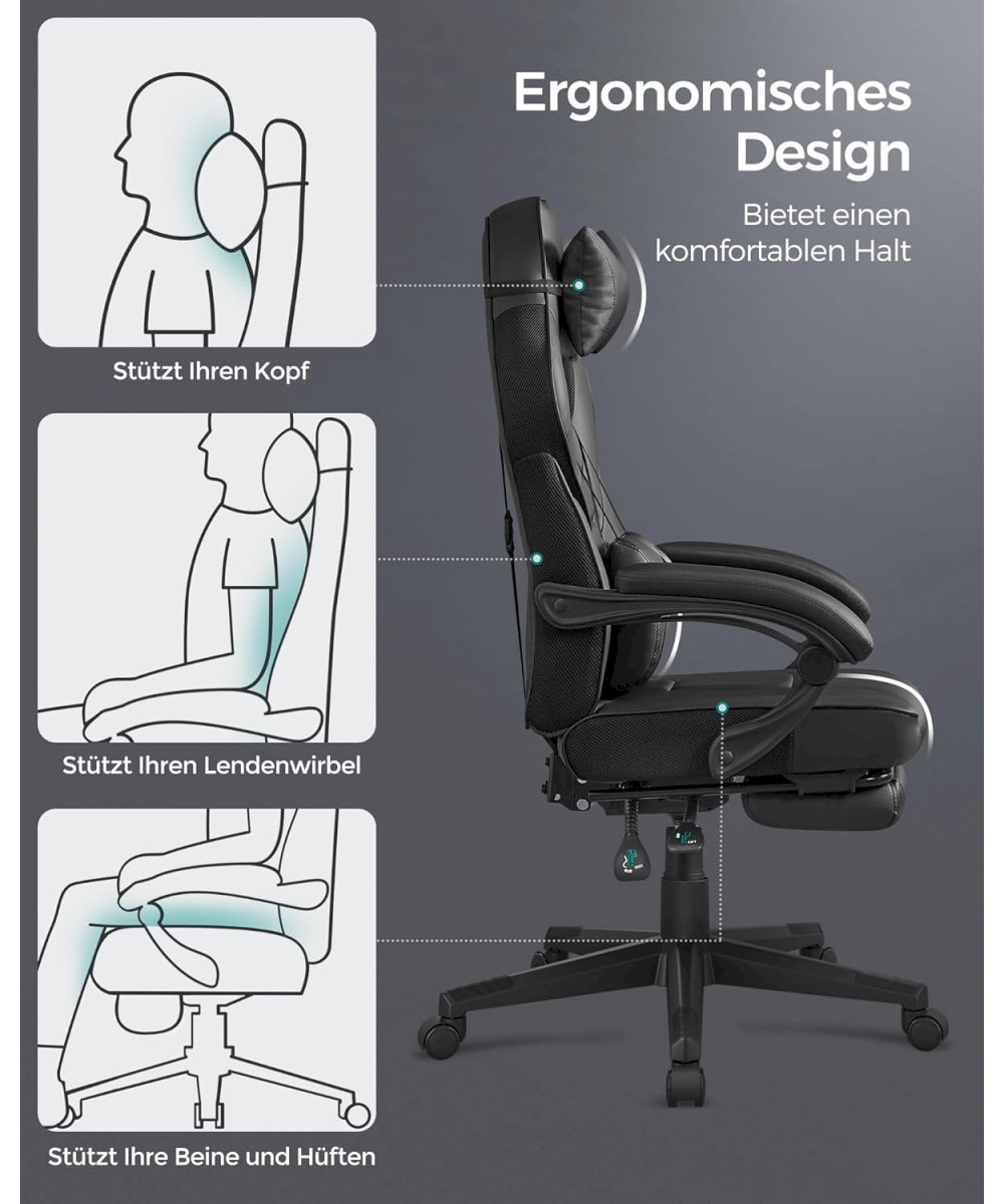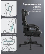 - CONFORT SANS FIN : Cette chaise ergonomique avec mécanisme d'inclinaison dispose d'un soutien lombaire, d'un repose-pieds, d'un appui-tête et de roulettes silencieuses en nylon, permettant à votre corps de se reposer pour que vous puissiez vous concentrer sur votre travail