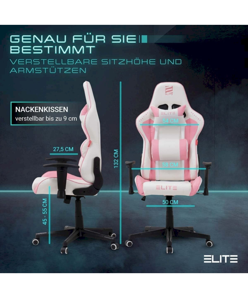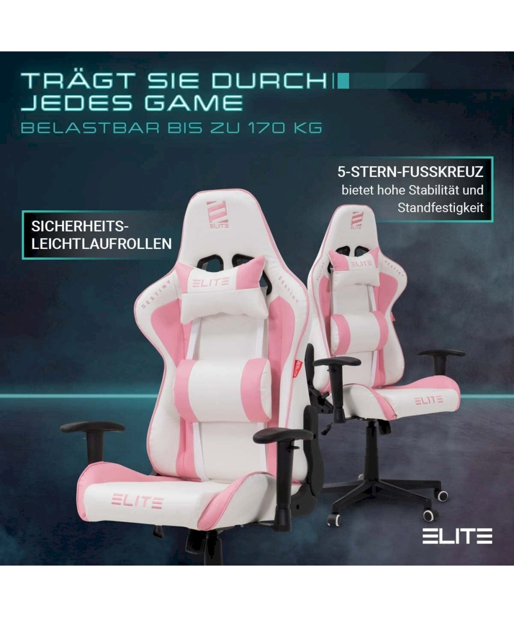 ELITE Gaming-Stuhl Ergonomischer Bürostuhl DESTINY MG200 Weiß/Pink