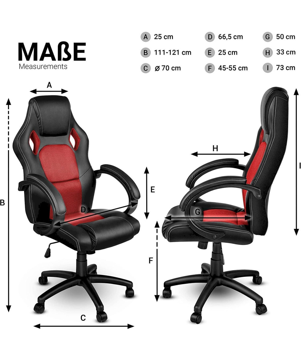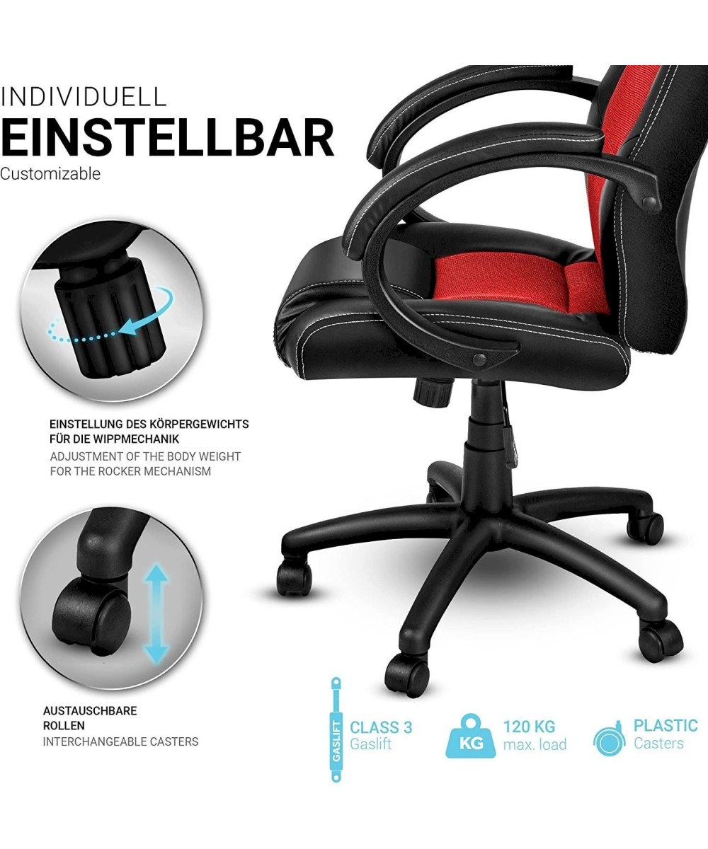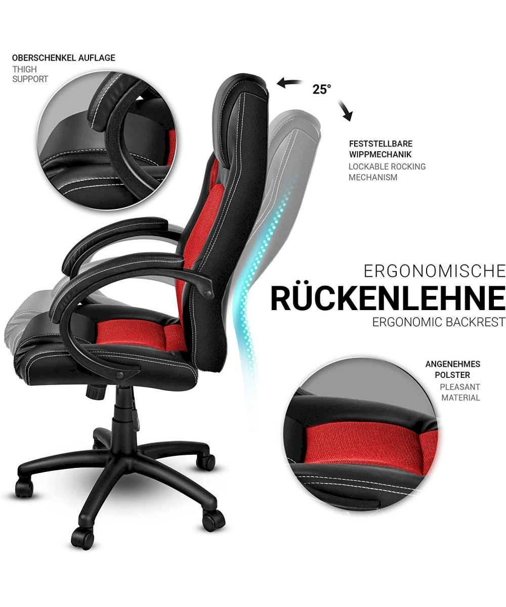 TRESKO Chaise Fauteuil siège de Bureau Racing Sport Rouge /Noir