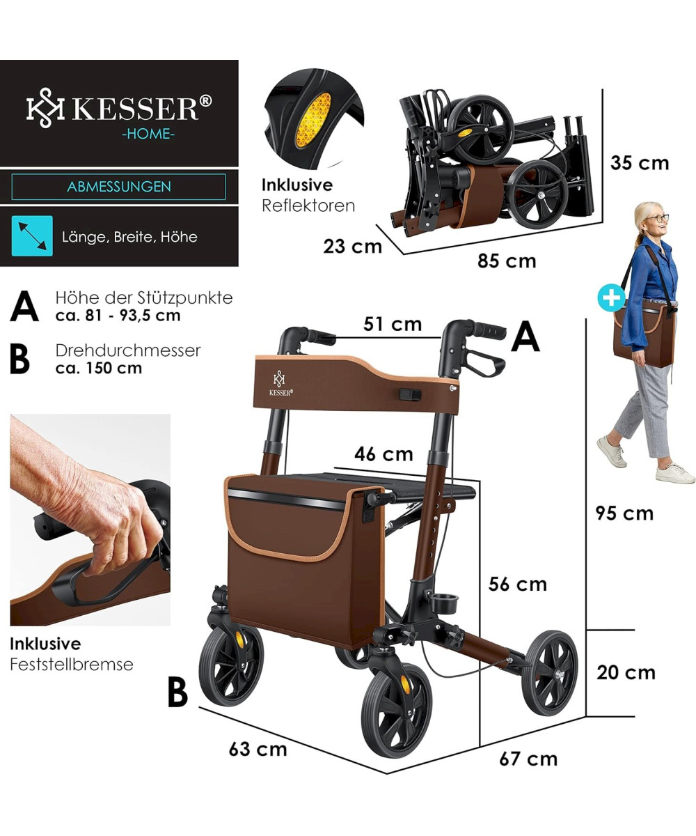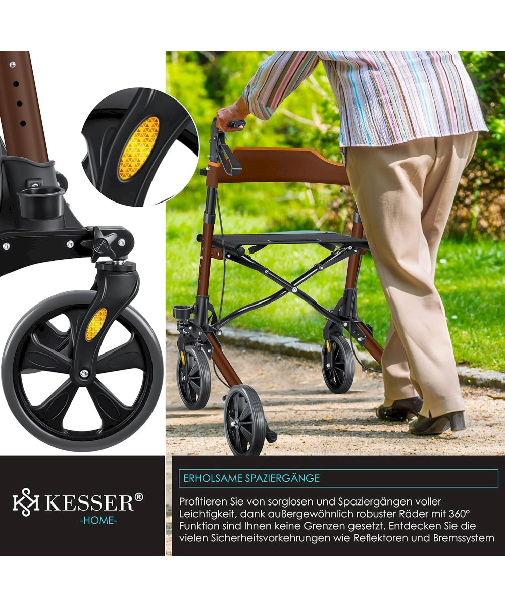 KESSER Déambulateur léger et pliant 4 roues Braun