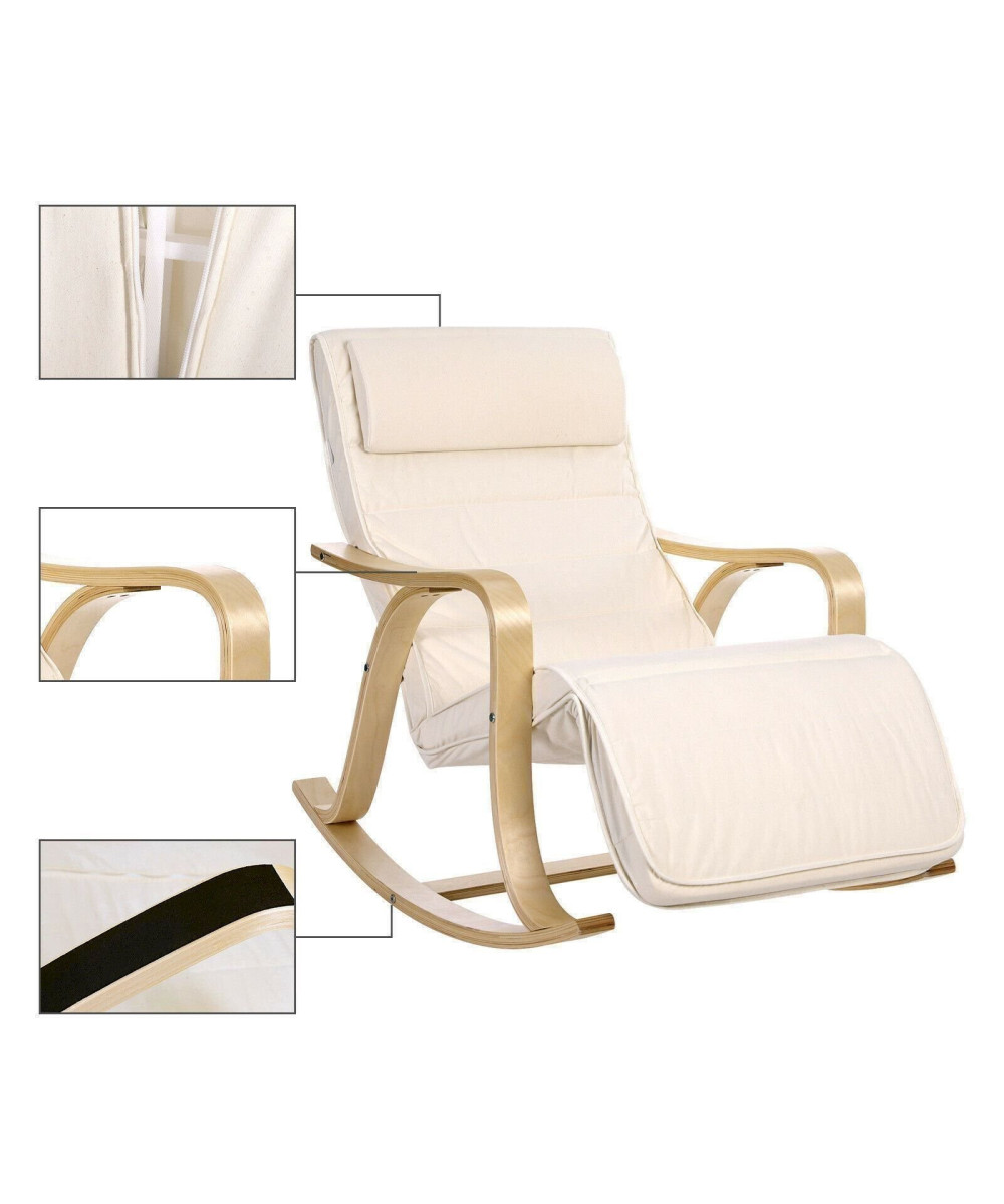 SONGMICS Fauteuil à bascule en bois de bouleau, Chaise berçante avec repose-pied réglable sur 5 hauteurs, housse en coton,