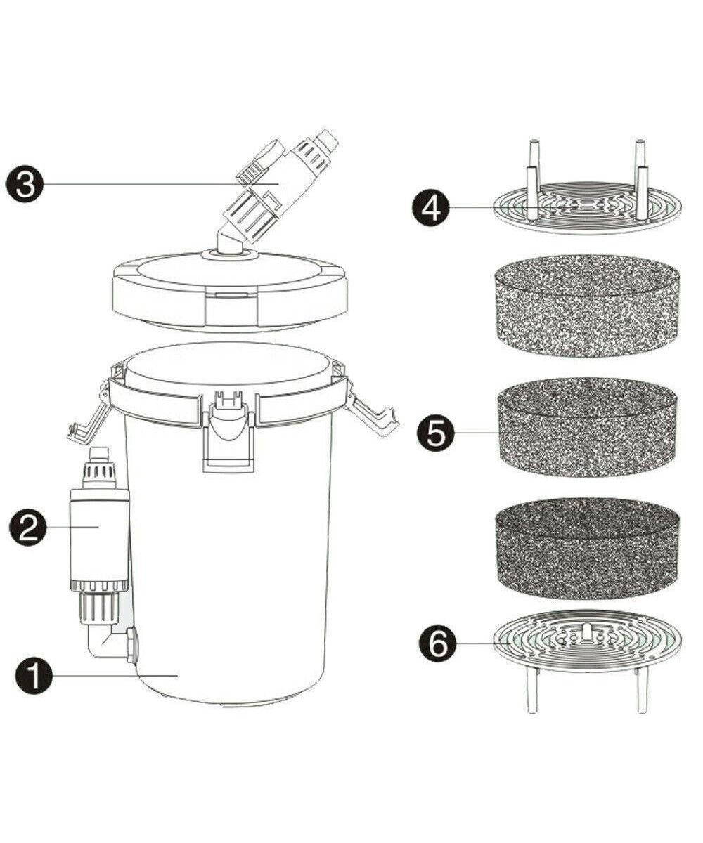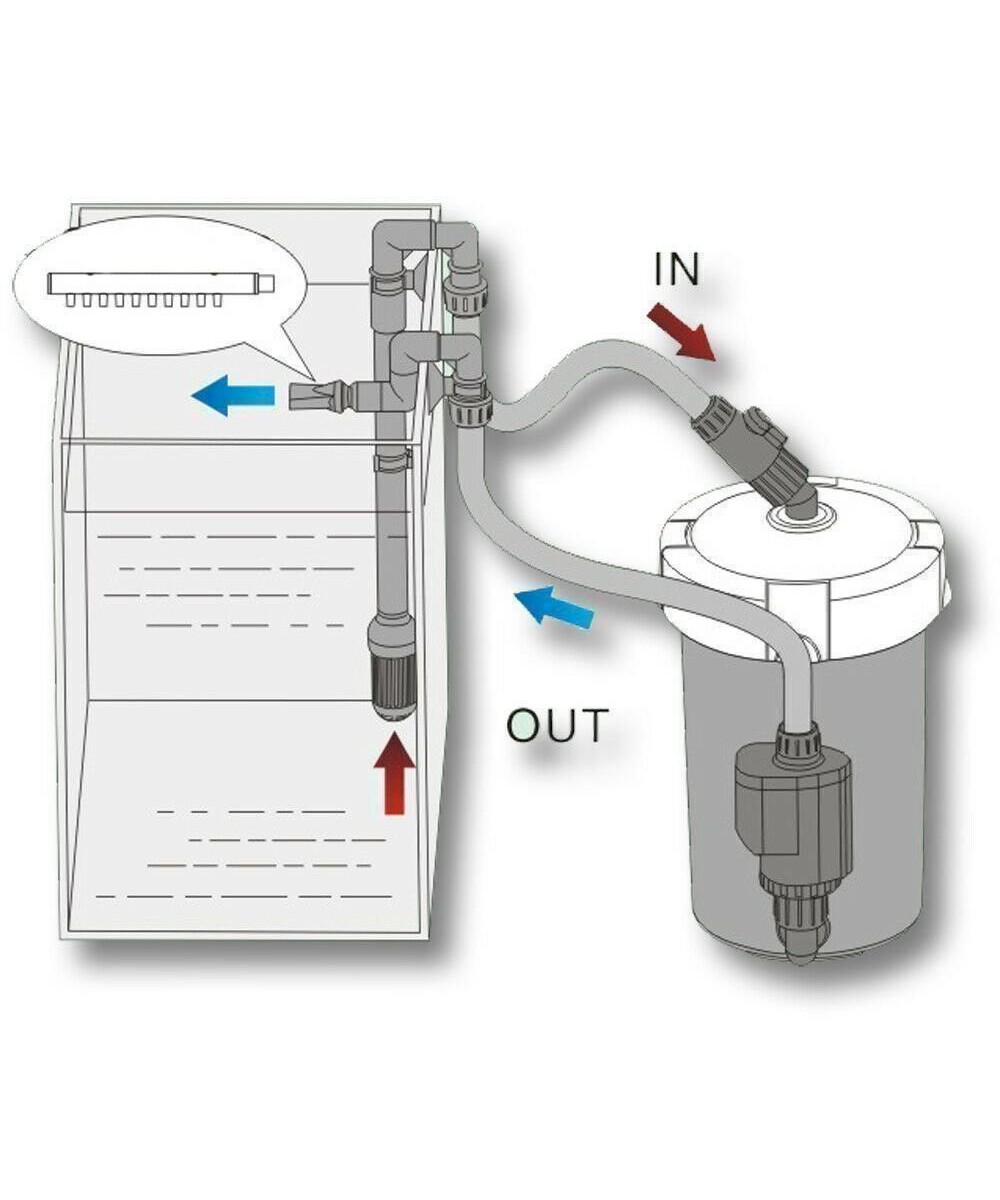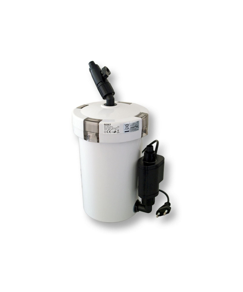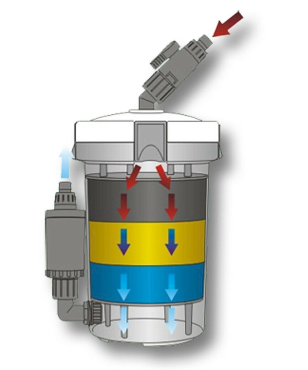 Un point fort du filtre extérieur pour l´aquarium est qu'il prend peu ou presque pas de place dans l'aquarium. Un filtre extérieur d'aquarium peut facilement être placé sous ou à côté du bassin. Grâce à des raccords de tuyau pivotants à 360° et qui se trouvent sur la partie supérieure du couvercle, vous pouvez trouver la position idéale de votre filtre. Le volume du bac permet une filtration importante, il offre assez de place pour différents médias filtrants.