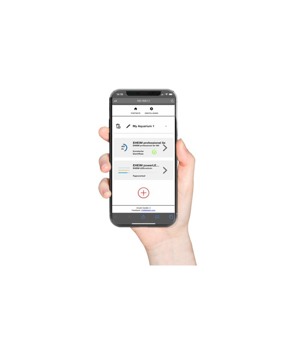 La fonction Wifi intégrée lui permet d'être librement configuré sans fil via un smartphone, une tablette ou un PC/MAC. Les modes librement configurables sont : débit constant, mode bio, mode pulse et mode manuel. En outre, le professionel 5e peut être relié à d'autres appareils - par exemple avec le contrôleur d'éclairage LEDcontrol+.