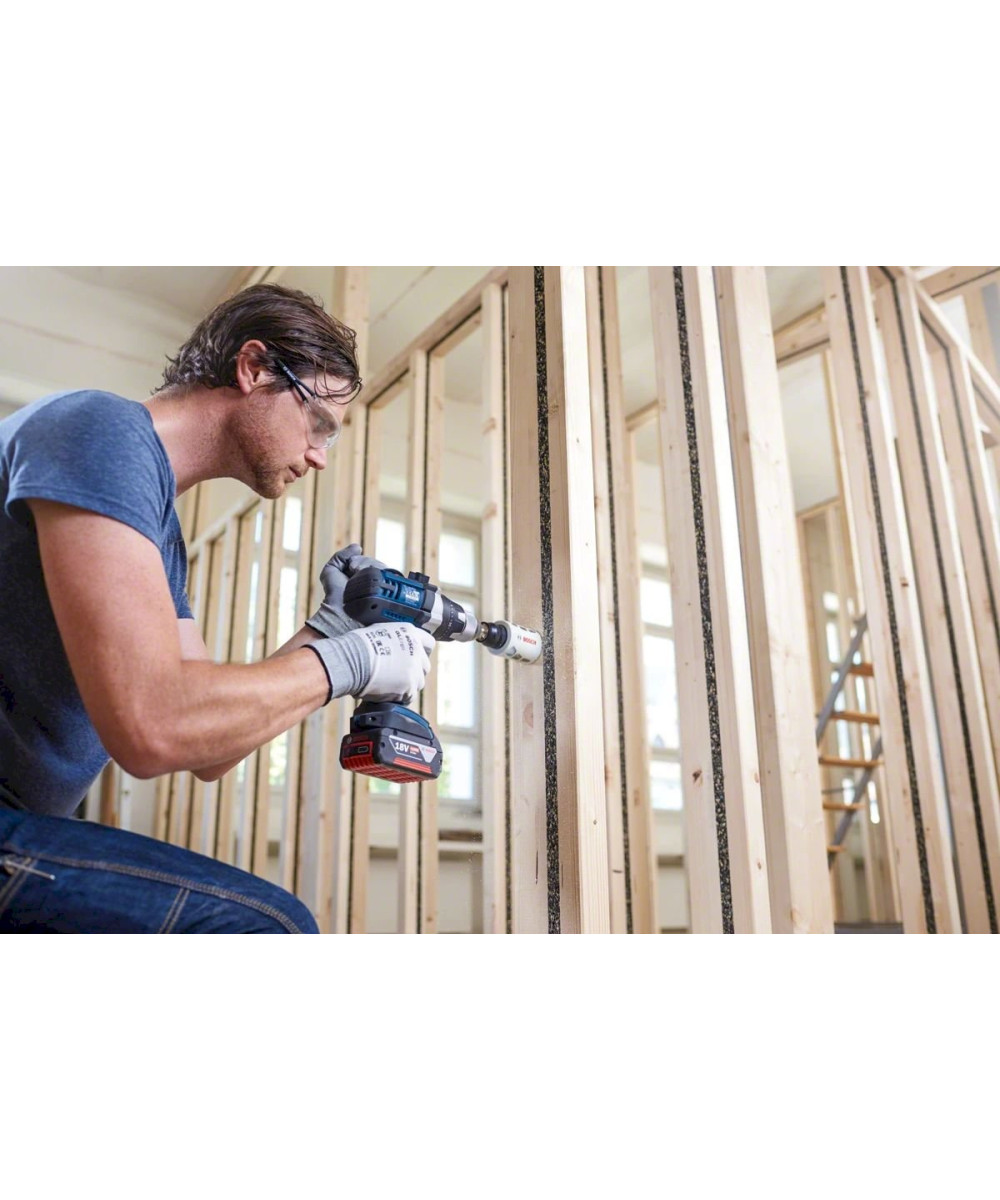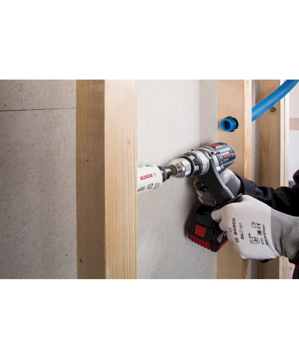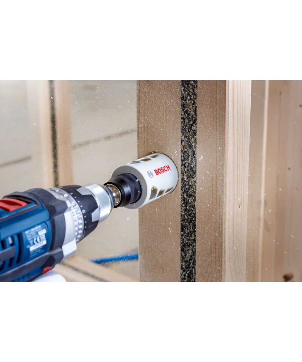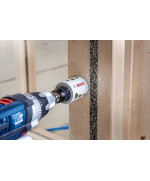 La scie trépan Progressor for Wood and Metal présente l'adaptateur Power Change unique de Bosch avec le système de montage le plus rapide du marché. Il permet de verrouiller/déverrouiller la scie trépan et les forets de centrage en un seul clic.