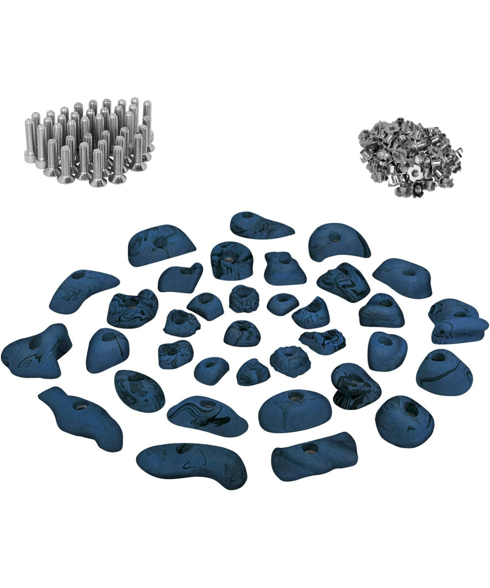35 prises d'escalade bleu moucheté + 35 vis + 100 écrous