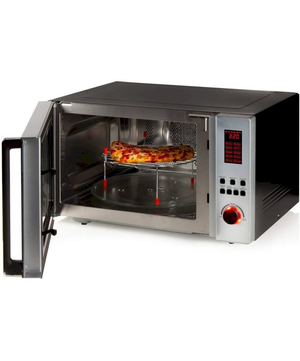 Besondere Highlights an diesem Kombi-Mikrowellengerät ist das große 42 Liter Fassungsvermögen, die Konvektor-Funktion und der große XL-Glasdrehteller. Die Mikrowelle bietet bis zu 10 verschiedene Kochprogramme. So können Sie durch die Nutzung der voreingestellten Programme, jederzeit Essen und Nahrung schnell kochen, backen, erhitzen und garen. Eingefrorene Gerichte können mit der Auftaufunktion einfach wieder aufgetaut werden. Zusätzlich bietet dieses Kombigerät eine extra Grillfunktion. Alle Programme lassen sich problemlos kombinieren, so dass Sie alle Vorteile auf einmal nutzen können. Selbst einen Kuchen können Sie mit dem Kuchenprogramm backen. Eine Soft-Lift-Tür rundet die Mikrowelle ab. Somit wird die Tür nicht laut zugeschlagen, sondern schließt sanft. Das elegante matt schwarze Design macht diese Mikrowelle auch optisch zu einem Highlight. Nicht nur funktionell, sondern auch ein Hingucker. Passend für jede Küche.