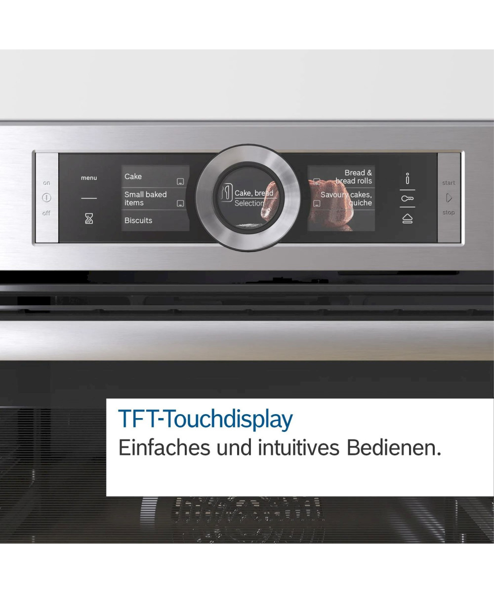 Vous vous perdez souvent dans les réglages du four ? Alors suivez le guide... et les instructions illustrées qui s'affichent sur l'écran tactile TFT. Ultra-intuitif, ce dernier est par ailleurs équipé de boutons de sélection directe, et d'un anneau de commande facile à utiliser. À tout moment, vous disposez d'un aperçu complet du menu, pour contrôler sans stress toutes les fonctions de votre four.