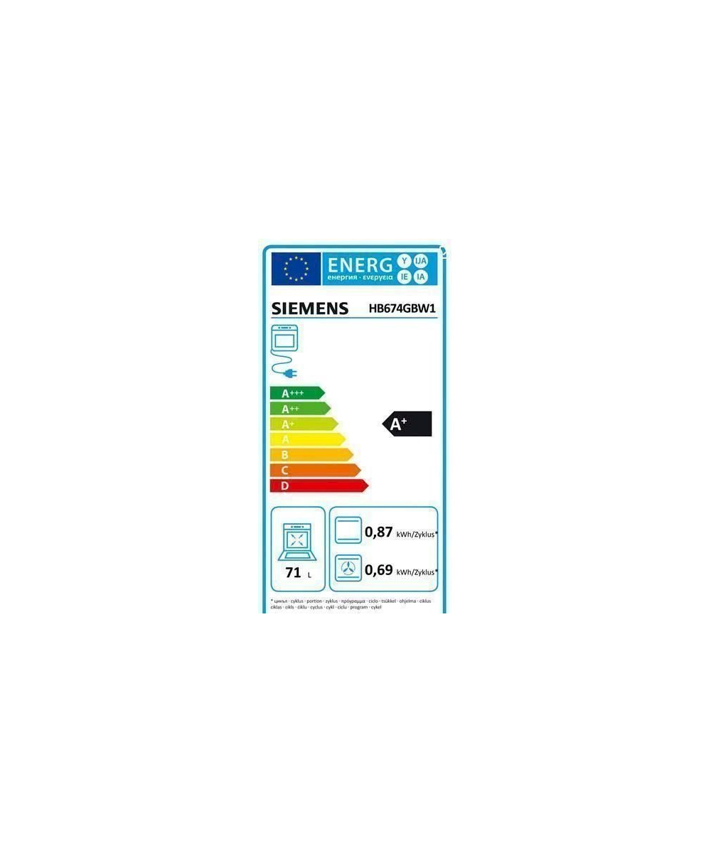 Siemens HB674GBW1 Four électrique/ 71 L/ auto-nettoyage/ Blanc/ automatique en acier inoxydable